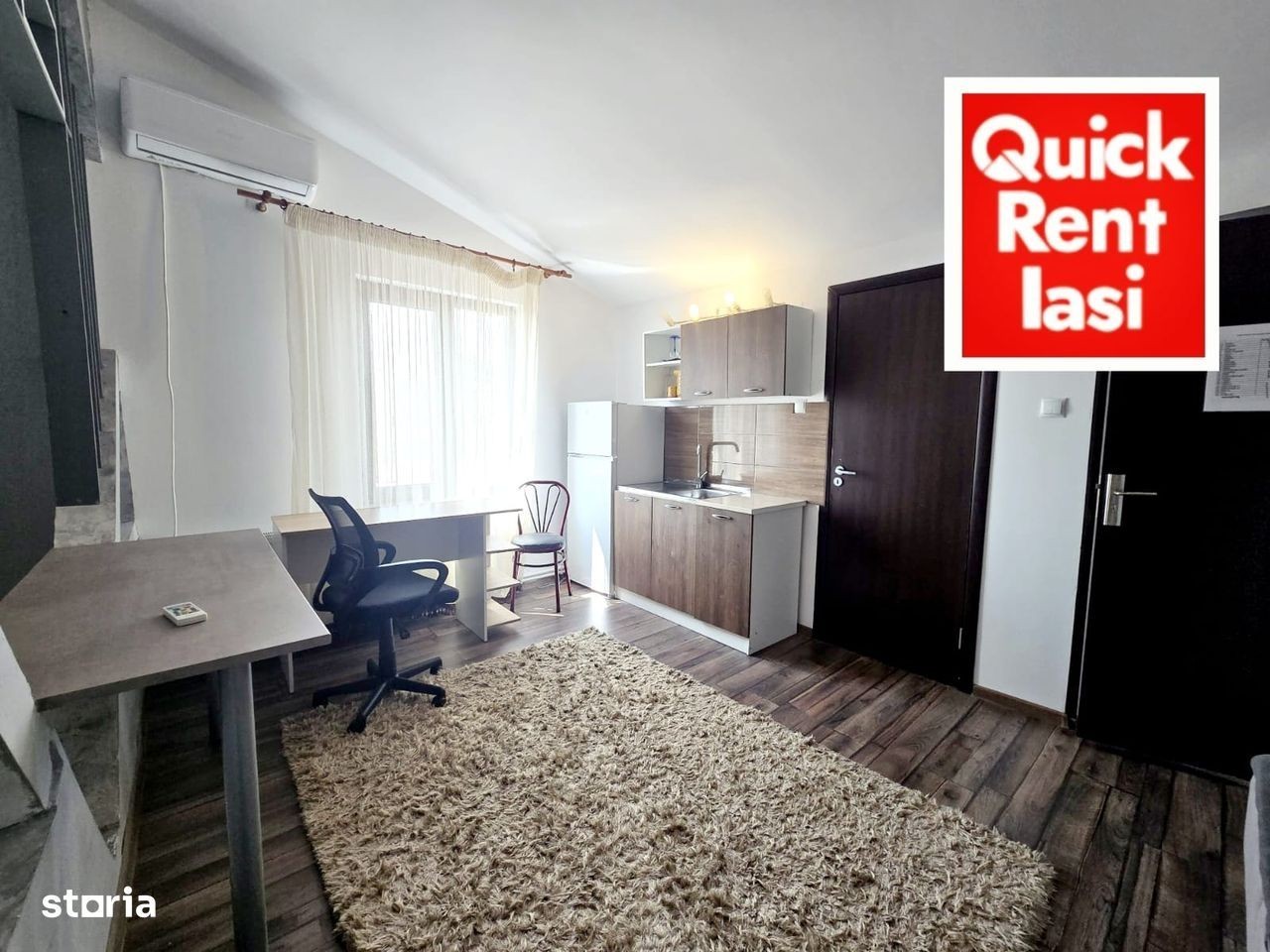 Bulevardul Independentei la 1 minut pe jos de UMF si 10 de Universitatea Cuza apartament 2 camere open space de inchiriat : modern mobilat si utilat, wi fi, tv, masina de spalat, pat dublu, sifonier, birou 600 euro / luna cheltuieli incluse in chirie ( pt.1 pers). QUICK RENT IASI tel.Contactează 545830