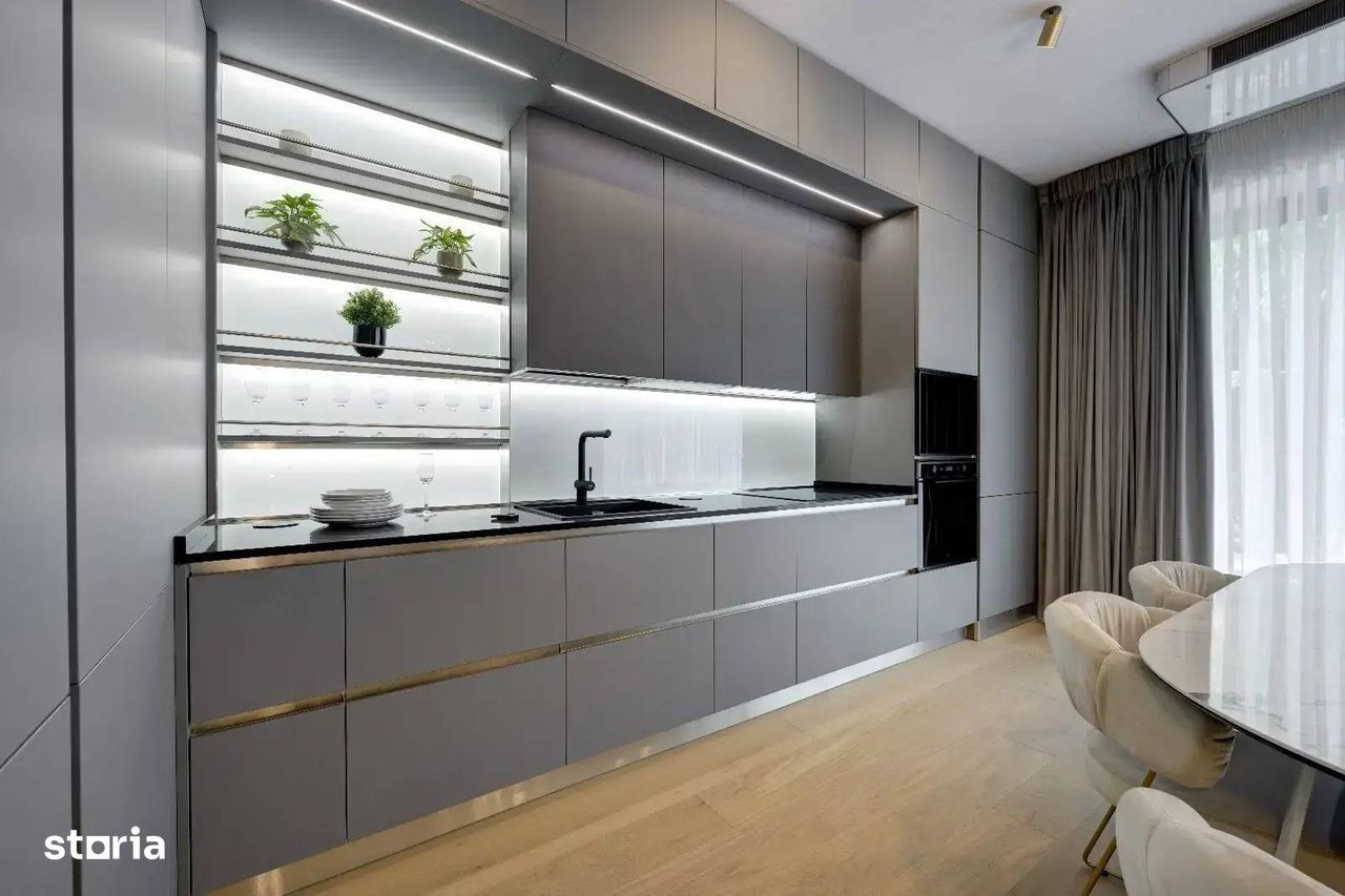 Vă propun spre achiziție un apartament tip duplex, situat într-o zonă premium, în imediata apropiere a pădurii și în centrul zonei Erou Iancu Nicolae. Proprietatea se află în vecinătatea Jolie Ville Galleria și a celor mai prestigioase școli internaționale din București - Cambridge School și Mark Twain. De asemenea, are acces rapid către Băneasa Shopping City, Grădina Zoologică, restaurante, clinici și alte puncte de interes. Imobilul face parte dintr-un proiect boutique exclusivist, format din doar două clădiri cu regim de înălțime P+3, prevăzute cu parcare subterană, lifturi moderne și facilități de top. Apartamentele sunt dispuse pe două niveluri - parter + etaj 1 sau etaj 2 + etaj 3 - cu acces individual prin parter sau etajul superior. Avantajele ansamblului: Înălțime generoasă a camerelor: 3.00 m în zona de zi, 2.80 m în dormitoare Structură fără grinzi, cu planșee realizate prin sistem modern de cabluri pretensionate - ideal pentru remodelare interioară Camere foarte spațioase și compartimentări eficiente Terase și balcoane ample, cu potențial ridicat de amenajare Spații verzi și zone de relaxare, cu acces direct către pădure pentru unele unități Lobby elegant pentru fiecare clădire Parcare subterană înaltă, compatibilă cu sistem tip Klaus, rampă de acces încălzită Acces securizat, monitorizare video 24/7 Lifturi Schindler de ultimă generație Elemente constructive și finisaje premium: Fațade ventilate, izolate cu vată minerală bazaltică, placate cu panouri decorative cu textură de lemn Zidărie exterioară Porotherm: 30 cm exterior, 25 cm între apartamente, 11.5 cm pereți interiori Finisaje interioare de calitate superioară și zugrăveli lavabile premium Sistem Smart Home integrat Gresie și faianță de import Italia, colecții premium Obiecte sanitare de top Uși interioare fabricate în Grecia, cu înălțime extinsă Încălzire în pardoseală cu pompe de căldură Hitachi și ventiloconvectoare dedicate fiecărei camere Control digital al temperaturii prin termostate inteligente și aplicație smartphone Tâmplărie din aluminiu cu profil tripan low-E (producție Belgia) Aparataj electric de top, cu funcționalitate smart Detalii apartament: Suprafață construită: 128,03 mp Suprafață utilă: 94,57 mp Curte: 43,80 mp Prețuri și condiții: Preț apartament: 350.980 EUR + TVA Loc de parcare subteran: 25.000 EUR + TVA (compatibil sistem Klaus) Comision 0% pentru cumpărător Pozele sunt cu titlu informativ, apartamentul se vinde fara mobila. Locație de excepție, într-un cadru verde, exclusivist - ideală pentru o locuință modernă, sigură și rafinată. Pentru informații suplimentare și programarea unei vizionări, vă invit să mă contactați: Cristian Alexe -