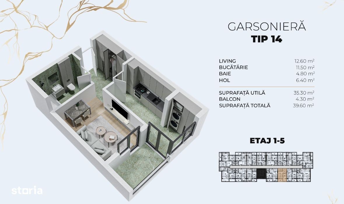 Garsonieră decomandată într-un ansamblu nou-finalizare Decembrie 2026