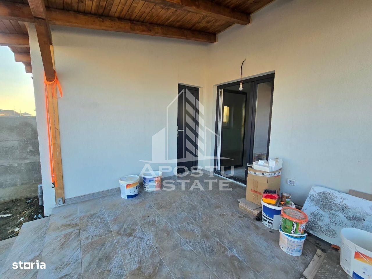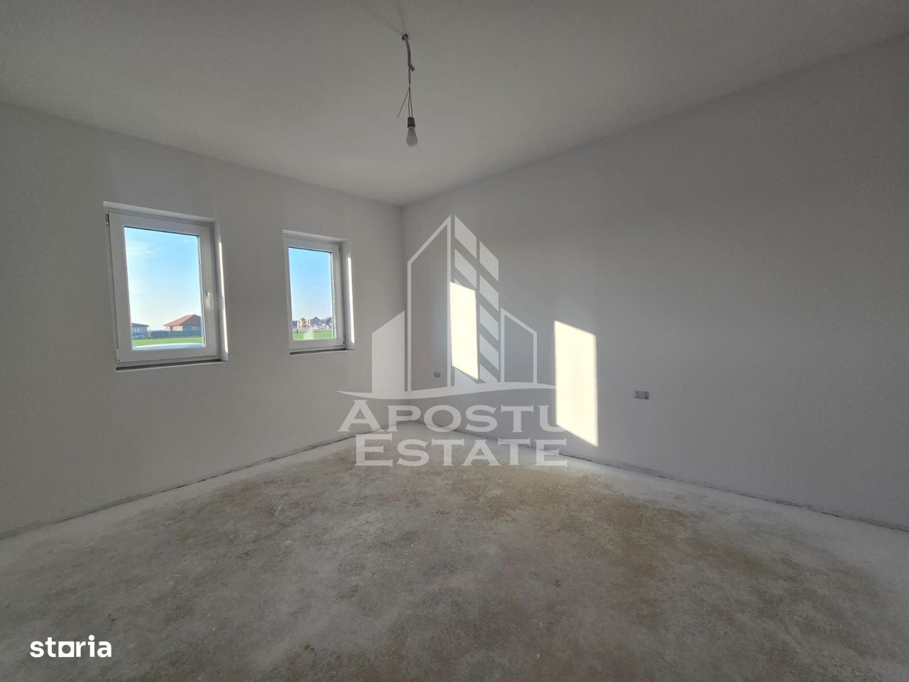 Apostu Estate va ofera spre vanzare un duplex modern cu 3 camere, situat in localitatea Sag, la doar 10 minute de Shopping City Timisoara. Predarea se face la cheie, cu finalizare estimata in luna decembrie 2025. Duplexul are o suprafata utila de 91 mp si o terasa acoperita de aproximativ 15 mp. Suprafata totala a terenului este de 350 mp. Compartimentarea este moderna si eficienta, cu living open space impreuna cu bucataria, de 40 mpu (bucataria se poate inchide), doua dormitoare spatioase de 14 si respectiv 17 mpu, dintre care unul matrimonial cu baie proprie, o baie de serviciu, camera tehnica, hol de acces, terasa acoperita in spate si acces la pod din holul principal. Imobilul este construit cu materiale de calitate superioara si finisaje premium. Dispune de: gaz, curent electric, fosa septica (in cateva luni se va putea racorda si la canalizare), centrala pe gaz, incalzire in pardoseala, prize si intrerupatoare Gewiss. Zidul comun dintre unitati are grosimea de 30 cm si este izolat fonic pentru un confort maxim. Constructie din caramida de 30cm pe exterior. Proprietatea beneficiaza de izolatie exterioara cu polistiren de 10 cm, tamplarie Salamander, geamuri tripan, acoperis din tigla, asteriala, porti cu deschidere automata si acces auto din beton amprentat. Avantajele acestei locuinte includ finisaje moderne atent alese, acces rapid catre oras, zona linistita si siguranta oferita de o constructie solida, ideala pentru familii. Disponibil acum pentru achizitie. Contactati Apostu Estate pentru detalii si vizionare. Oferim consultanta bancara gratuita prin intermediul colaboratorilor nostri.