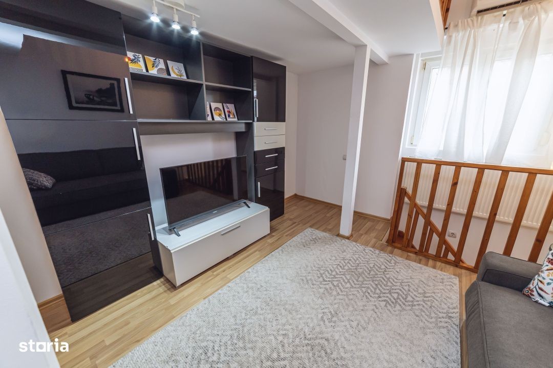 Apartamentul face parte din portofoliul Milluu, o platforma digitala care si-a propus sa simplifice experienta de inchiriere a unui apartament, de la gasirea si instalarea chiriasului, pana la ultima zi a perioadei de inchiriere. Inchiriind cu Milluu, vei face parte din comunitatea chiriasilor care folosesc tehnologia in avantajul lor, astfel incat contractul si restul documentelor se vor semna in aplicatie, iar pe parcursul contractului plata chiriei si a facturilor de utilitati se va afla la un click distanta. Si pentru ca si in cele mai moderne apartamente se pot ivi mici probleme, iti punem la dispozitie un pachet complet de asistenta si interventii tehnice de urgenta, care acopera orice defectiune a instalatiilor sanitare, electrice sau de termoficare. La final, pentru linistea ta, contractul de inchiriere contine si o polita de asigurare a tuturor bunurilor din apartament. Pentru mai multe informatii, poti accesa site-ul nostru Apartament cu doua camere nedecomandat, mobilat si utilat complet. Imobilul este decorat cu gust si inteligent compartimentat, dispune de multiple spatii de depozitare. Apartamentul are suprafata utila de 37 mp si se afla la etajul 7 al unui bloc de 7 etaje, construit in anul 2008. Facilitatile incluse sunt: renovat recent, dressing, bucatarie utilata, aer condiționat, masina de spalat rufe, TV, cablu TV, WI-FI, centrala termica. Apartamentul este disponibil imediat. Adresa exacta este: Strada Rasinari nr. 4a Nu sunt acceptate animale de companie. Se poate fuma doar afara.