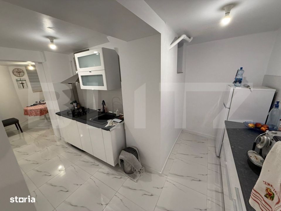 Blitz va propune un apartament situat ultracentral, în inima Craiovei, la kilometrul 0, acest apartament spațios reprezintă o oportunitate rară, ideală atât pentru locuință, cât și pentru activități comerciale. Imobilul a fost complet renovat în anul 2022 și îmbină armonios eleganța clasică a zonei cu dotările moderne necesare confortului contemporan. Cu o suprafață utilă generoasă de 110 mp, apartamentul este compus din 3 camere luminoase, o baie mare, o bucătărie încăpătoare, hol și două intrări separate - un avantaj major pentru diverse destinații de utilizare. Confortul termic este asigurat de o centrală termică în condensare și un sistem eficient de încălzire în pardoseală. Proprietatea beneficiază de un teren de 421 mp, cu curte proprie și acces auto, oferind locuri de parcare în interior. Poziționarea este excelentă - în imediata apropiere a Parcului Sf. Dumitru, Mercur Center, magazine (Profi), școli și Universitatea din Craiova. Datorită amplasării strategice și configurației flexibile, apartamentul este ideal pentru o gamă variată de activități comerciale sau birouri, dar poate fi și un cămin modern și confortabil pentru cei care își doresc să trăiască în centrul orașului.