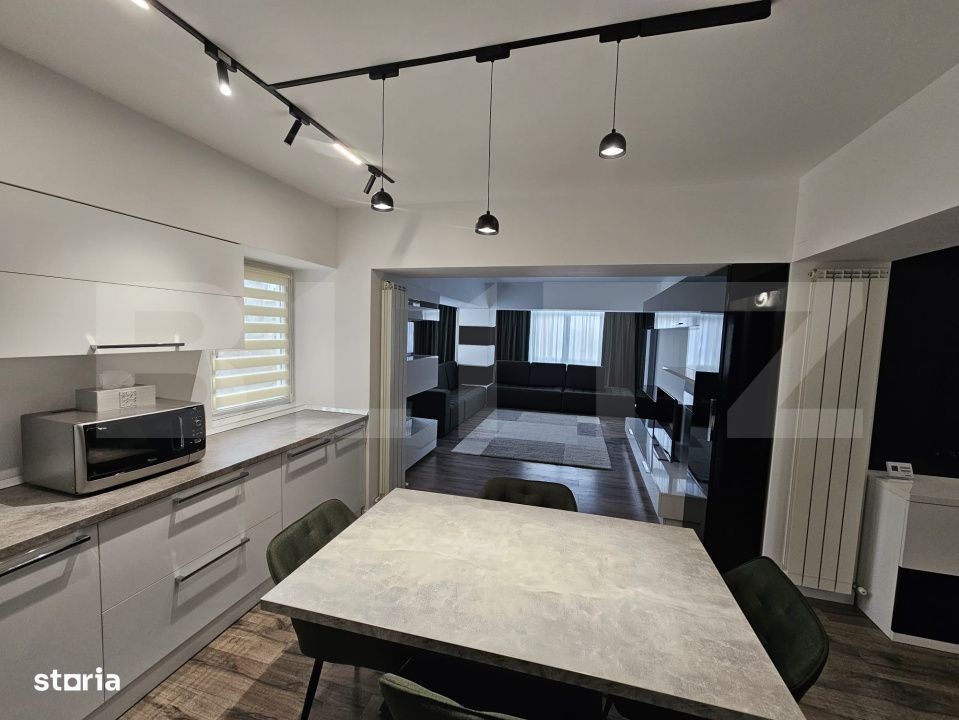 Blitz vă oferă spre achizitie un apartament cu 3 camere, situat în zona Niela, din cartierul Craiovita Noua. Apartamentul este situat la etajul 2 al unui imobil cu 4 etaje și are o suprafață totală de 83 mp. Compartimentarea este decomandată și gândită astfel: hol, bucătărie open space cu sufrageria, două dormitoaresi o baie. Finisajele sunt moderne, iar mobilierul este personalizat pe spațiu. Multitudinea spațiilor de depozitare, mobilierul minimalist și aerul condiționat sunt doar câteva dintre avantajele acestui apartament. Imobilul are în dotare centrală termică proprie, geamuri termopan cu tâmplărie din PVC și ușă metalică la intrare. Dispune de masina de spalat vase, masina de spalat rufe si uscator si 3 televizoare. Se oferă spre vanzare complet mobilat și utilat. Pentru mai multe detalii, va asteptam cu drag la vizionare!