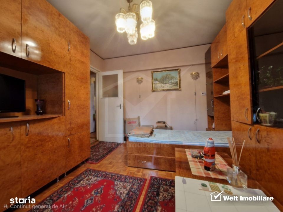 Doar in luna decembrie comision 0 la cumparare! Welt Imobiliare va propune spre achizitie un apartament cu 2 camere, semidecomandat, situat in Piata Hermes, Gheorgheni, situat la etajul 4 din 10, cu orientare estica. Suprafata este de 43,25 mp, compartimentarea fiind urmatoarea: - hol, bucatarie, debara, living, spatiu de depozitare, baie, dormitor cu balcon. Apartamentul este utilat si mobilat clasic, dispune de centrala termica pe gaz, calorifere, parchet din lemn masiv si geamuri cu rama din lemn. Detine si pivnita de aproximativ 4 mp. Bloc cu lift nou si casa scarii recent renovata. Zona Piata Hermes ofera acces imediat la scoli, gradinite, magazine alimentare si statii de autobuz. La doar 10 minute de mers pe jos pana la Iuliu Mall si 15 minute pana la baza sportiva Gheorgheni sau FSEGA. Ideal pentru locuit sau investitie.