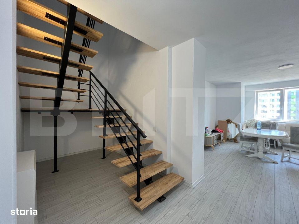 Blitz va ofera spre închiriere un apartament spațios și luminos, situat la etajul 4 din 6 dotat cu lift, ideal pentru cei care își doresc un spațiu bine organizat, cu un plus de intimitate și confort. Apartamentul dispune de o scară interioară care separă armonios zona de zi de cea de noapte, oferind o compartimentare practică și echilibrată. La parter se află un living generos, separat de bucătăria complet mobilată, perfectă pentru gătit și socializat, alături de o baie de serviciu, utilă pentru oaspeți. La etaj, regăsim două dormitoare - unul mobilat, gata de utilizare, iar celălalt liber, oferind libertatea de a fi amenajat ca dormitor suplimentar, birou sau cameră pentru hobby-uri. Tot la etaj se află un dressing încăpător și o baie principală dotată cu cadă, ideală pentru momentele de relaxare. Locuința este parțial mobilată, cu posibilitatea de personalizare în funcție de nevoile viitorului chiriaș. Este situată într-o zonă liniștită, ideală pentru cupluri, familii sau persoane care lucrează de acasă. Disponibil imediat.