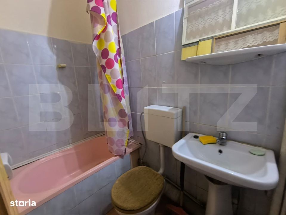 Blitz propune spre vânzare o garsonieră tip cameră de cămin, situată la parterul unui bloc izolat termic din zona Metrom. Imobilul a fost modificat complet, fiind acum prevăzut cu baie proprie și bucătărie, ceea ce îl face ideal atât pentru locuit, cât și pentru investiție (închiriere). Garsoniera este foarte călduroasă, iar costurile de întreținere sunt reduse datorită centralelor de bloc și a apometrelor. Caracteristici principale: -Suprafață utilă: 20 mp -Compartimentare: Semidecomandat -Etaj: Parter Avantaje și dotări: -Bloc izolat termic -Baie proprie și bucătărie -Ușă metalică -Geamuri termopan -Zonă foarte aproape de stația de autobuz (strada principală) -Acces rapid către puncte de interes din cartier Ideal pentru: -Locuință personală -Investiție cu randament bun (închiriere pe termen lung)