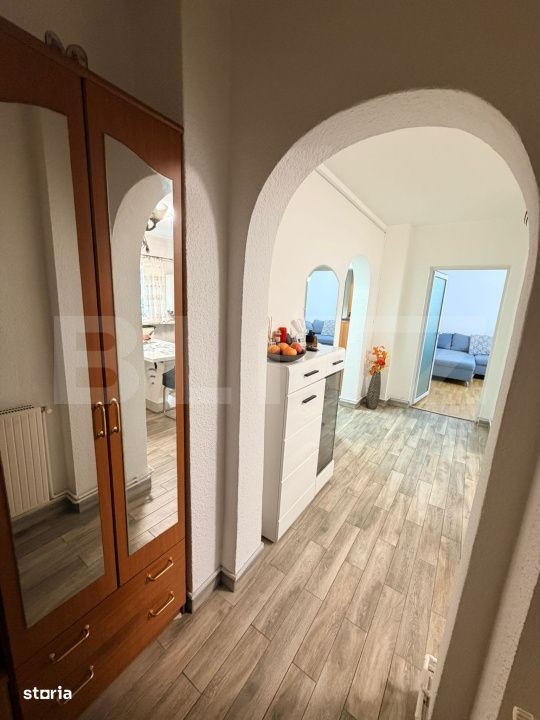 Blitz Imobiliare va propune spre vânzare un apartament spațios și bine compartimentat, cu suprafața de 86 mp, măsurată cu tehnologie laser pentru acuratețe maximă, situat într-una dintre cele mai căutate zone ale Brașovului - Astra. Proprietatea se află la etajul 1 din 8 al unui bloc construit în 1990, dotat cu lift schimbat recent și oferă toate avantajele unei locuințe moderne, bine întreținute. Caracteristici principale: Suprafață : 86 mp verificată cu laser Compartimentare: 3 camere decomandate Bucătărie spațioasă 2 băi complet funcționale 2 balcoane mari, închise cu termopan (montate în 2020) Centrală termică proprie 2 locuri de parcare Renovat în 2020 - finisaje moderne, instalații schimbate, design funcțional Orientare excelentă, cu lumină naturală pe tot parcursul zilei Locație: Zona Astra - una dintre cele mai accesibile și bine deservite zone ale orașului. În imediata apropiere se găsesc supermarketuri, școli, grădinițe, stații de transport în comun, parcuri și alte facilități care asigură confortul unui stil de viață urban. Acest apartament este ideal pentru o familie sau pentru cei care își doresc o locuință spațioasă, renovată, într-o zonă liniștită și foarte bine conectată. Pentru mai multe detalii sau pentru a programa o vizionare, nu ezitați să ne contactați.