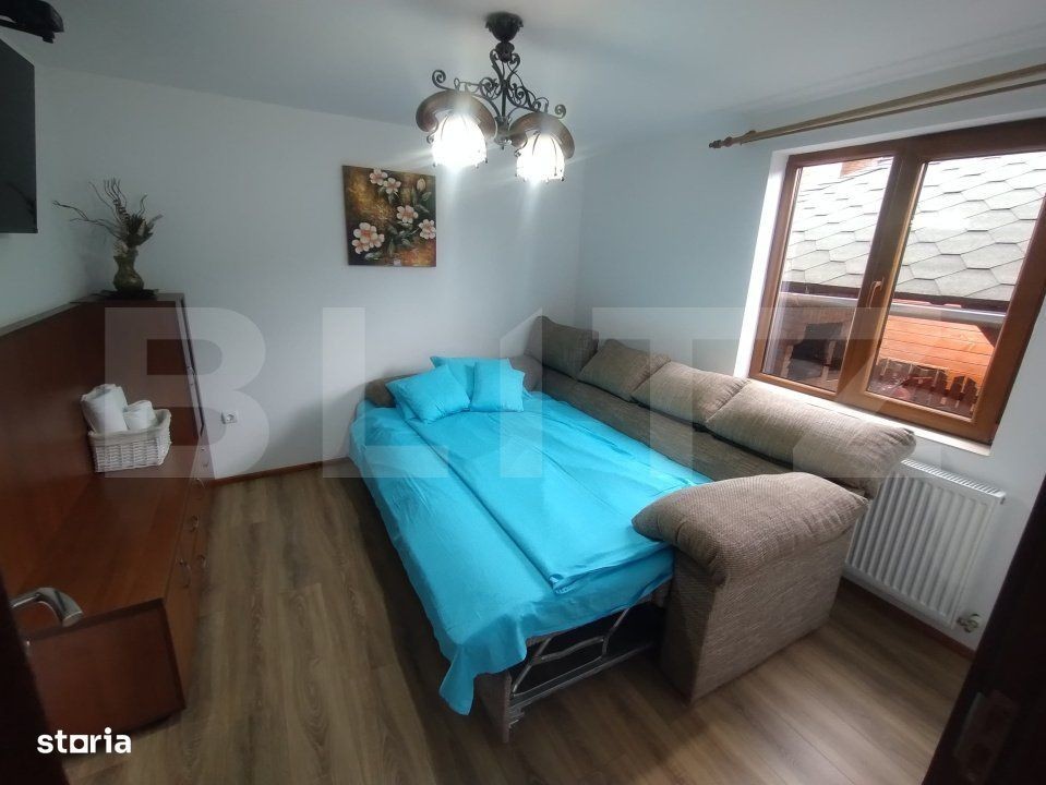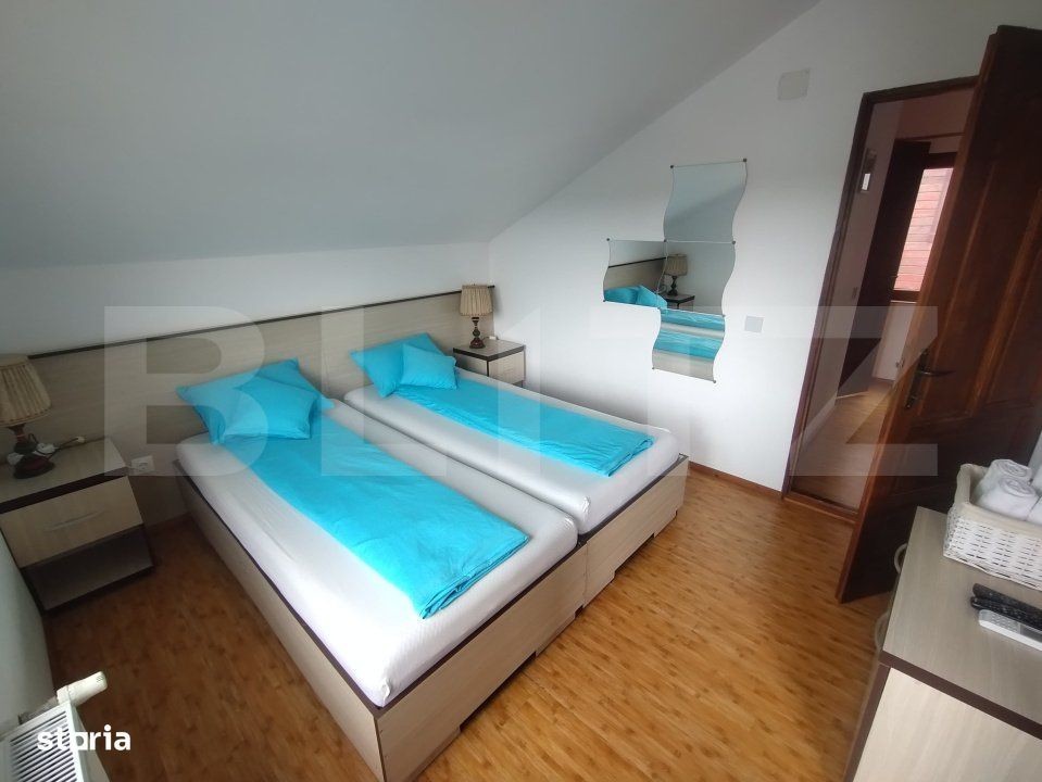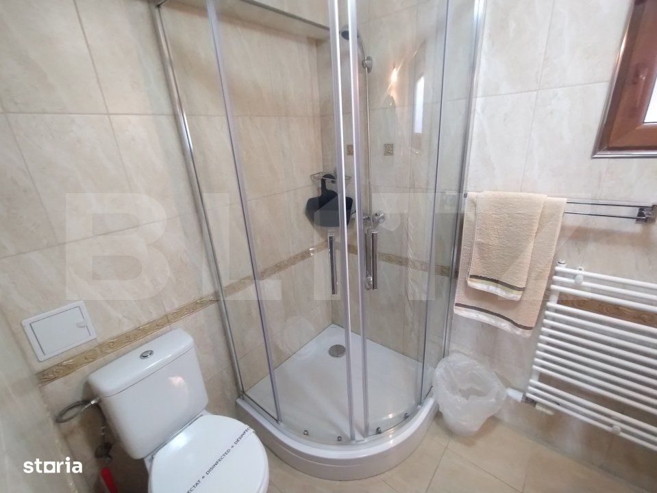BLITZ ofera spre vânzare o cabană modernă, construită pe structură solidă, situată într-o zonă excelentă a stațiunii Băile Figa - una dintre cele mai dinamice destinații de vacanță din Transilvania. Ideală atât pentru uz personal (casă de vacanță), cât și pentru investiție în regim hotelier (Booking, Airbnb, etc.). Detalii proprietate: Suprafață utilă totală: 100 mp Teren aferent: 182 mp, cu spațiu verde amenajat Regim de înălțime: Parter + Etaj Compartimentare optimă pentru confort și funcționalitate: Parter: Living open-space cu zonă de relaxare Bucătărie complet utilată 1 baie complet echipată 1 dormitor Acces direct spre terasă acoperită de 16 mp, perfectă pentru petreceri și relaxare în aer liber LA Mansarda: 2 dormitoare generoase, mobilate modern 1 baie secundară 1 balcon cu priveliște către statiune Facilități exterioare: Terasă acoperită de 16 mp, dotată cu: Grătar zidit Ceaun tradițional Sobă rustică pentru gătit sau încălzit Spațiu verde în curte, ideal pentru relaxare sau amenajare zonă de joacă pentru copii Siguranță & dotări suplimentare: Sistem de alarmă instalat - controlabil la distanță Construcție solidă, bine întreținută, izolată termic Răcoroasă vara și călduroasă iarna - ideală pentru utilizare pe tot parcursul anului Toate utilitățile: gaz,apă, electricitate,canalizare, TV Potrivită pentru: Locuință de vacanță pentru familie Investiție cu randament ridicat în turism - închiriere în regim hotelier Cabana este deja pregătită pentru a genera venit pasiv din închirieri - poate fi predată complet mobilată și echipată Localizare excelentă:La doar câteva minute de mers pe jos de baza de agrement Băile Figa (piscine, saune, salină, locuri de joacă, trasee outdoor) Acces rapid către orașul Beclean și infrastructura principală a județului Zonă liniștită, dar aproape de punctele de interes turistic Pentru mai multe informații, vizionare sau negociere preț, vă rugăm să ne contactați: