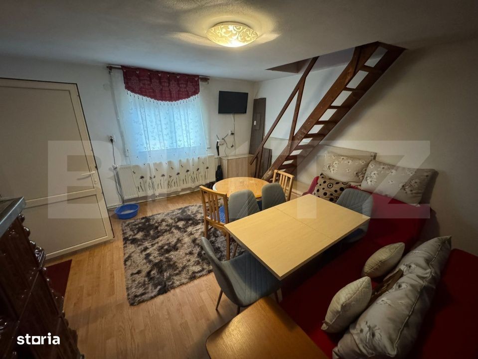 Blitz va prezinta o casă de vânzare - Valea Jelnii | 500 mp teren | Construcție 2015 Se vinde casă situată într-o zonă liniștită de pe Valea Jelnii, ideală pentru locuință permanentă sau casă de vacanță. Suprafață teren: 500 mp Suprafață utilă: 50 mp An construcție: 2015 Compartimentare: 2 dormitoare la etaj Living + bucătărie open space Beci spațios Dotări & Utilități: Geamuri termopan Fosa septică Apă curentă prin hidrofor (din fântână proprie) Toate utilitățile (gaz, apă, canalizare) sunt la poarta casei Front stradal generos: 38 m Se vinde parțial mobilată și utilată Proprietate compactă și eficientă, cu potențial de extindere. Zonă în dezvoltare, acces facil spre oraș. Pentru detalii suplimentare sau vizionare, vă stăm la dispoziție!