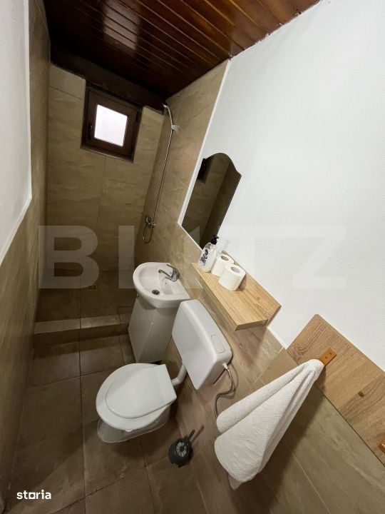 Cabana în inima stațiunii Băile Figa - disponibilă acum în exclusivitate prin Blitz Imobiliare! Ai visat vreodată la o cabană cochetă, complet echipată, gata să-ți aducă atât momente de relaxare cât și venituri din turism? Avem exact ce cauți! Localizare ideală: Situată chiar în centrul stațiunii balneare Băile Figa, una dintre cele mai populare destinații turistice din Transilvania, cabana se află la doar câteva minute de orașul Beclean, cu acces facil din toate direcțiile. Zona este foarte căutată pentru turismul de weekend, wellness și agrement, ceea ce face din această proprietate o investiție excelentă. Detalii despre proprietate: Suprafață utilă: 80 mp Teren amenajat cu zonă de relaxare și spațiu verde 4 dormitoare generoase, ideale pentru familii sau grupuri de turiști: 2 dormitoare la parter, fiecare cu baie proprie - confort maxim pentru oaspeți 2 dormitoare la etaj - perfect pentru copii sau prieteni Living spațios și luminos, open space, ideal pentru petrecerea timpului împreună Bucătărie complet mobilată și utilată, gata de folosință Terasă exterioară cu zonă de grătar - locul perfect pentru seri relaxante Se vinde complet mobilată și utilată! Tot ce vezi rămâne - mobilierul, electrocasnicele, decorul - gata pentru a începe activitatea imediat, fie că dorești să o folosești personal, fie că intenționezi să o închiriezi. Investiție sigură și profitabilă Datorită poziționării excelente și cererii crescute din zonă, cabana este ideală pentru: Închiriere în regim hotelier (Airbnb, Booking etc.) Reședință de vacanță proprie Investiție pe termen lung într-o zonă turistică în plină dezvoltare Nu rata această oportunitate unică! Proprietăți ca aceasta, bine amplasate și pregătite pentru exploatare imediată, sunt rare în Băile Figa. Contactează-ne acum pentru mai multe informații sau pentru a programa o vizionare! Blitz Imobiliare - partenerul tău în investiții inteligente!