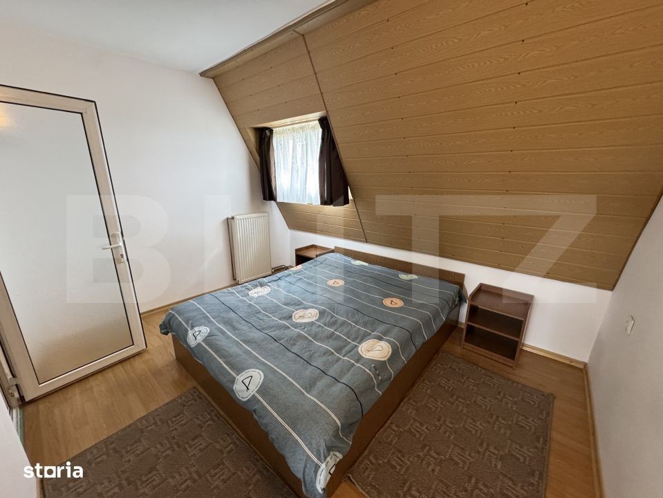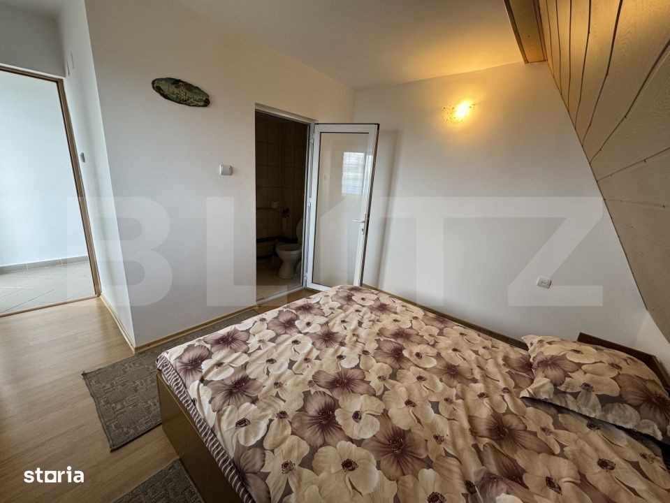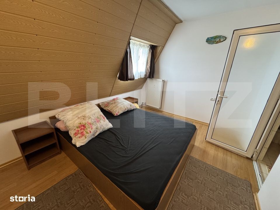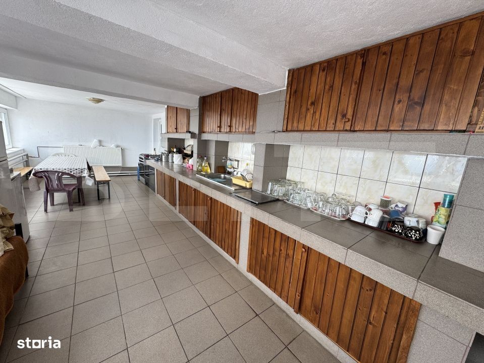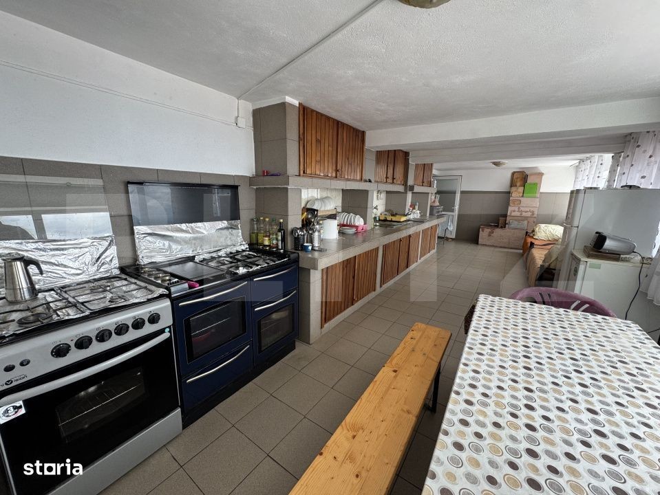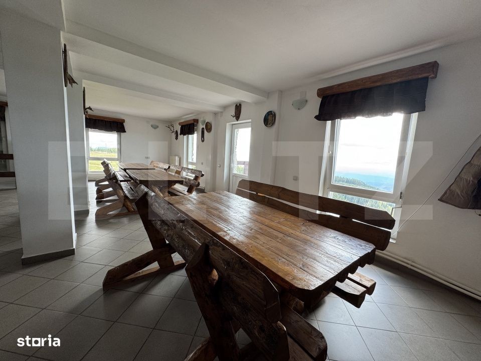 BLITZ vă propune spre vânzare o proprietate cu potențial turistic deosebit, situată în zona Vârful Roman din Horezu, județul Vâlcea, la o altitudine de 1.720 m, cu o priveliște spectaculoasă spre Mănăstirea Alina Maria. Construită în anul 2013, casa are o suprafață utilă de aproximativ 660 mp și este desfășurată pe demisol parțial, parter, două etaje și mansardă, având un total de 14 camere cu băi proprii, completate de spații tehnice și funcționale. La demisol se află două camere, o baie, un hol generos, bucătărie și două spații de depozitare. Parterul este configurat cu un salon amplu, ideal pentru restaurant sau sală de evenimente, două grupuri sanitare și casa scării. Etajul 1 cuprinde șase camere cu băi proprii, o cameră de serviciu și un spațiu de depozitare, iar etajul 2 oferă cinci camere cu băi proprii, o cameră de serviciu și un spațiu suplimentar de depozitare. Mansarda este împărțită în două camere mari, fiecare cu baie proprie. Încălzirea se realizează prin centrală termică pe lemne, cu distribuție prin calorifere. Proprietatea este racordată la internet, iar instalația de apă este protejată împotriva înghețului prin utilizarea antigelului în circuitul de distribuție. Alimentarea cu energie electrică este asigurată momentan de generatoare pe combustibil, urmând a fi conectată la rețeaua publică în următoarele luni. În exterior, proprietatea dispune de un foișor de 14 mp, precum și de o construcție anexă, pe parter, cu o suprafață utilă de 81 mp, destinată funcțiunilor tehnice și de personal, fiind formată din cameră tehnică, magazie de lemne, bucătărie și două camere pentru muncitori, încălzite cu sobe. Imobilul se vinde cu toate documentele în regulă: cadastru, intabulare, autorizație de construire, fiind ideal pentru deschiderea unei pensiuni, a unui retreat montan sau ca investiție într-o zonă cu potențial turistic în creștere. Combinația dintre peisajul natural spectaculos, compartimentarea versatilă și infrastructura completă face din această proprietate o oportunitate rară în inima munților Vâlcii.