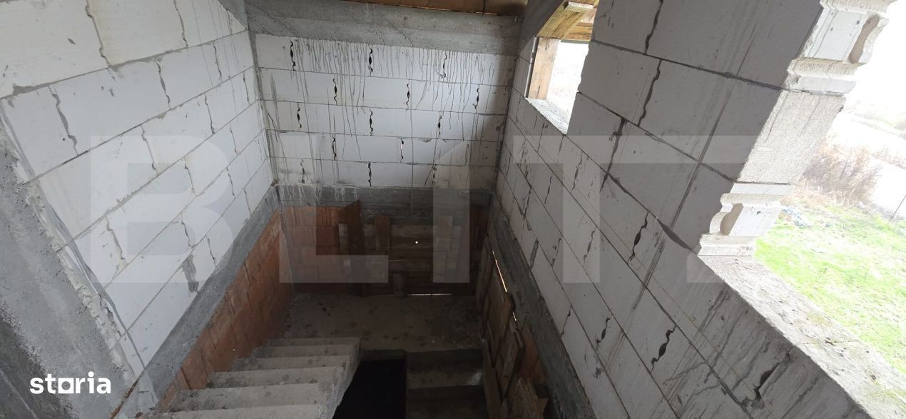 Blitz va oferă spre vânzare casă la roșu, cu regim de înălțime P+M, amplasată pe un teren generos de 400 mp, într-o zonă în plină dezvoltare, cu construcții noi și comunitate de calitate, in Simnicul de Jos. Imobilul are o suprafață utilă de aproximativ 125 mp și o compartimentare compactă, gândită pentru a oferi confort unei familii cu copii, dar nu numai. Stadiul actual al lucrărilor permite viitorilor proprietari să își personalizeze atât compartimentarea interioară, cât și finisajele, oferind libertate totală în amenajare. Compartimentare propusă: Parter: living spațios, bucătărie (poate fi închisă sau open-space), un dormitor/birou, baie Mansardă: 3 dormitoare și o baie. Terenul de 400 mp oferă suficient spațiu pentru curte, zonă de relaxare sau alte amenajări exterioare. Utilități disponibile în apropiere: gaze naturale, curent electric, apă și canalizare (în prezent casa nu este racordată). Acces facil către oraș și principalele puncte de interes. Un proiect cu potențial, care își așteaptă viitorii proprietari pentru a-i da viață și personalitate. Va asteptam la vizionare cu mai multe detalii!