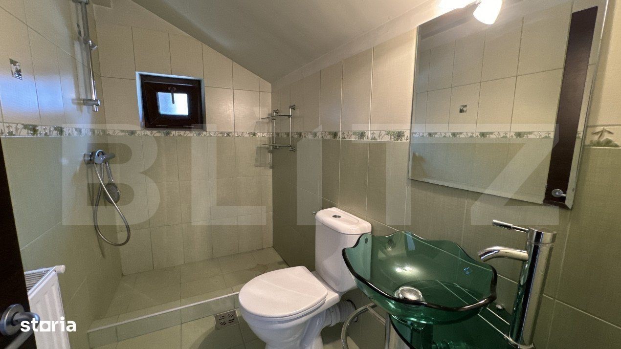 BLITZ propune spre vânzare o frumoasă casă cu regim de înălțime S + P + M, de 333 mp utili, cu o curte mai mult decât generoasă de 2.040 mp, situată în cartierul Catargiu, foarte aproape de Spitalul Județean. Casa a fost construită în 2008 folosind materiale de calitate și având o structură de rezistență solidă, un design elegant și practic, dar și o curte superbă, plină de verdeață, pomi fructiferi, un brad superb și magnolii. Compartimentarea imobilului este următoarea: - la subsol avem 4 încăperi, toate finisate complet, pe o suprafață de 60 mp (cameră tehnică, spații de depozitare) - la parter regăsim un hol mare din care accesăm cele 4 camere (dormitoare), 2 băi, bucătăria și garajul, ce se accesează atât din exterior printr-o ușă secțională, cât și din interiorul casei; în spate, cu acces din bucătărie, avem o terasă acoperită - la mansardă avem 3 camere, un living open space foarte generos, o baie și un balcon mare. Proprietatea se accesează foarte ușor și se bucură de o deschidere de 26 m, la o stradă asfaltată, totodată beneficiind de toate utilitățile, cu centrală termică pe gaz. Imobilul reprezintă o opțiune foarte bună pentru o familie numeroasă sau, într-o lume tot mai digitalizată, o variantă potrivită pentru a îmbina nevoia de locuire cu sediul unei firme/birouri de lucru. De asemenea, casa oferă posibilitatea viitorilor proprietari de a se bucura de liniște, aer curat și multă verdeață, fiind în același timp foarte aproape de puncte de interes din oraș precum Spitalul Județean de Urgență, parcul Nicolae Romanescu și Universitatea de Medicină și Farmacie. Vă aștept la vizionare pentru a vă convinge de avantajele și beneficiile acestei proprietăți deosebite.