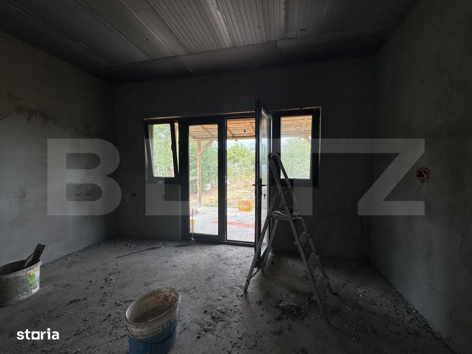 Blitz propune spre vanzare o casa cu regim de inaltime P + 1, avand o suprafata utila de 100 mp, in zona Preajba, cu o curte pe o suprafata de 300 mp avand in partea din spate si spatiu pentru gradina. Compartimentarea casei este una practica, la parter dispune de o camera pretabila pentru spatiu comercial, un living open space, o camera, baie si terasa acoperita, iar la etaj un living open space, camera si baie. Casa este construita recent, anul 2024, din bca, este placata cu polistiren, acoperis din tabla Bilka, beneficiaza de apa de la retea, curent si fosa septica. Proprietatea se acceseaza pe o strada asfaltata.