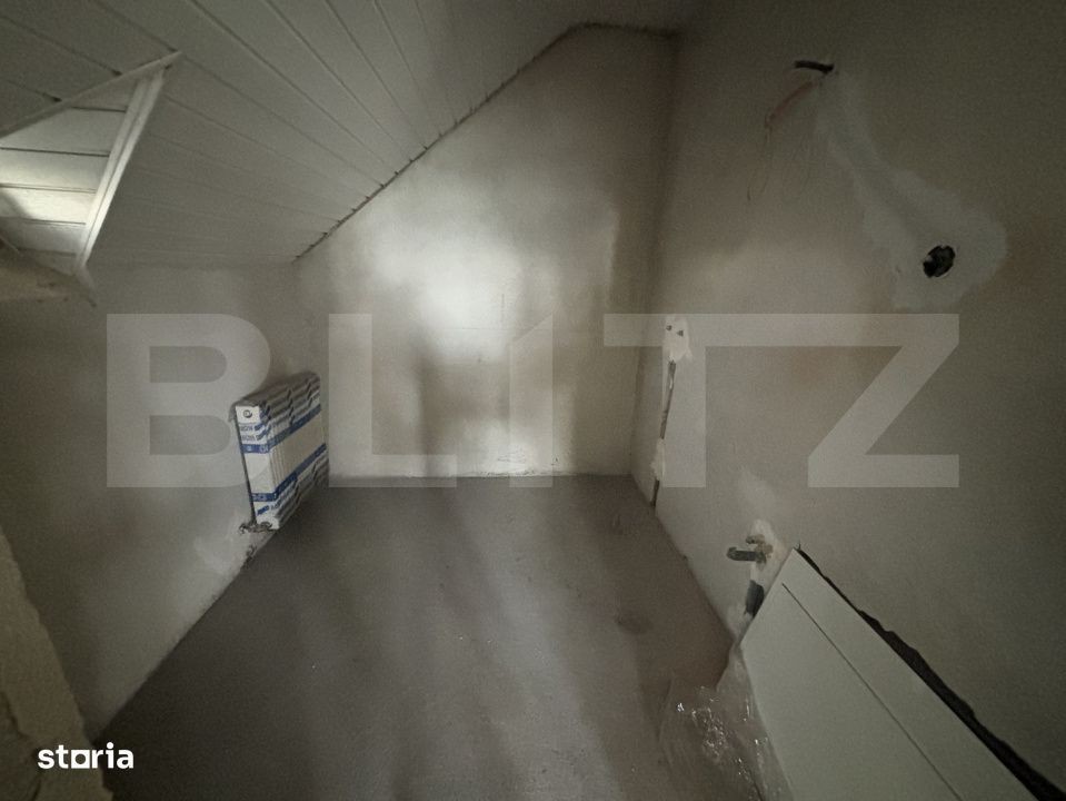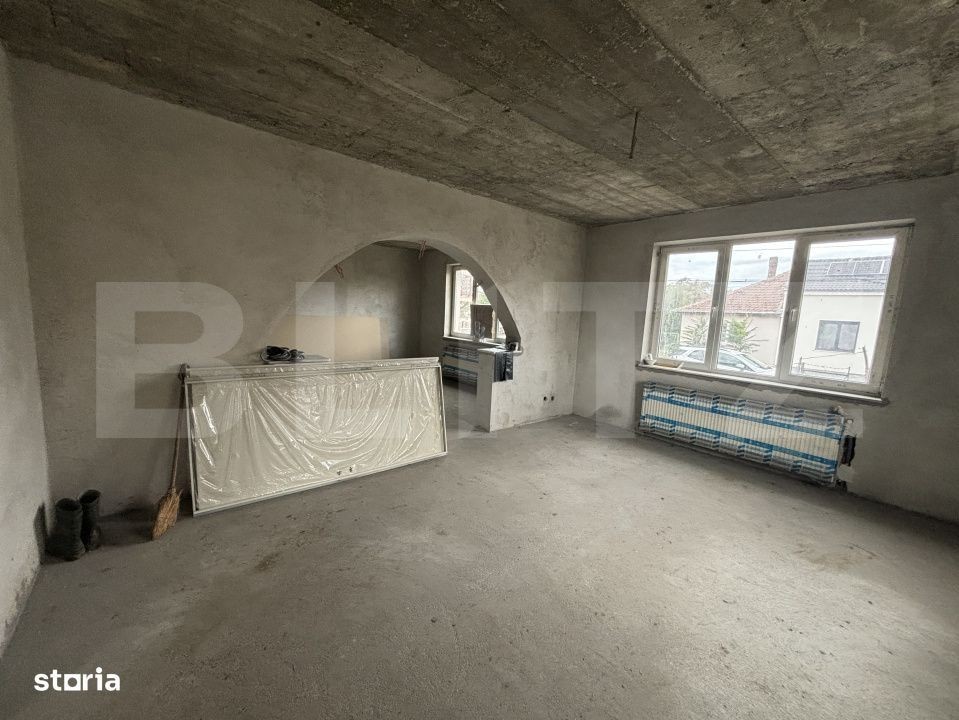 Blitz vă propune spre vânzare o casă semifinisată, construită pe două niveluri (P+1), cu o suprafață utilă de 120 mp și teren generos de 780 mp, împrejmuit. Utilități și dotări: -Canalizare și apă în curte -Curent trifazic -Geamuri termopan cu pervaz de marmură interior-exterior -Calorifere montate și racordate -Izolație exterioară completă -Acoperiș modern, rezistent Compartimentare: -Parter: bucătărie, baie, cămară, cameră ce poate fi folosită ca birou sau dormitor de oaspeți, living generos cu zonă de luat masa -Etaj: două dormitoare, baie, spațiu suplimentar ce poate fi transformat în cameră sau dressing -Casa oferă multiple posibilități de finisare și personalizare, fiind alegerea ideală pentru o familie care își dorește spațiu, confort și curte proprie. Locație liniștită, cu acces facil la drumuri principale și puncte de interes. Pentru detalii și vizionări, vă rugăm să ne contactați