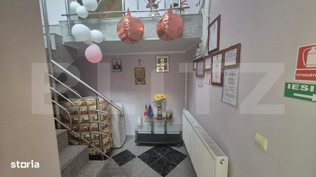 Blitz va ofera spre vanzare o pensiune turistica superba + casa de locuit aproape de zone de interes din Satu Mare: sala de evenimente Esedra si parcul acvatic Aquastar, care atrag constant clienti pe parcursul intregului an. Proprietate construita recent (2017). Dispune de 6 camere pe 3 nivele, dotate fiecare in parte cu hol, bucatarie, baie si dormitor. La ultimul nivel fiecare camera are cate un balcon spatios individual. O terasa acoperita, o curte spatioasa cu o toaleta suplimentara la indemana. O parcare acoperita si o gradina frumoasa. De asemenea proprietatea are separat pe langa pensiune, o casa de locuit compusa din o sufragerie, un dormitor, un hol, o bucatarie si o baie. Locatie ideala pentru a continua traditia familiei si a pensiunii, cu clienti fideli care revin an de an in fiecare sezon asigurand astfel o activitate constanta si profitabila asigurata de ospitalitatea gazdelor, dupa preferinte se poate transforma locatia in alta destinatie. Ar fi pacat sa ratati o altfel de sansa, e o locatie deosebita care merita investitia solicitata! Pentru mai multe informații sau pentru a programa o vizionare va rog sa ne contactati cat de repede pentru a nu va parea rau ca ati ratat aceasta sansa!