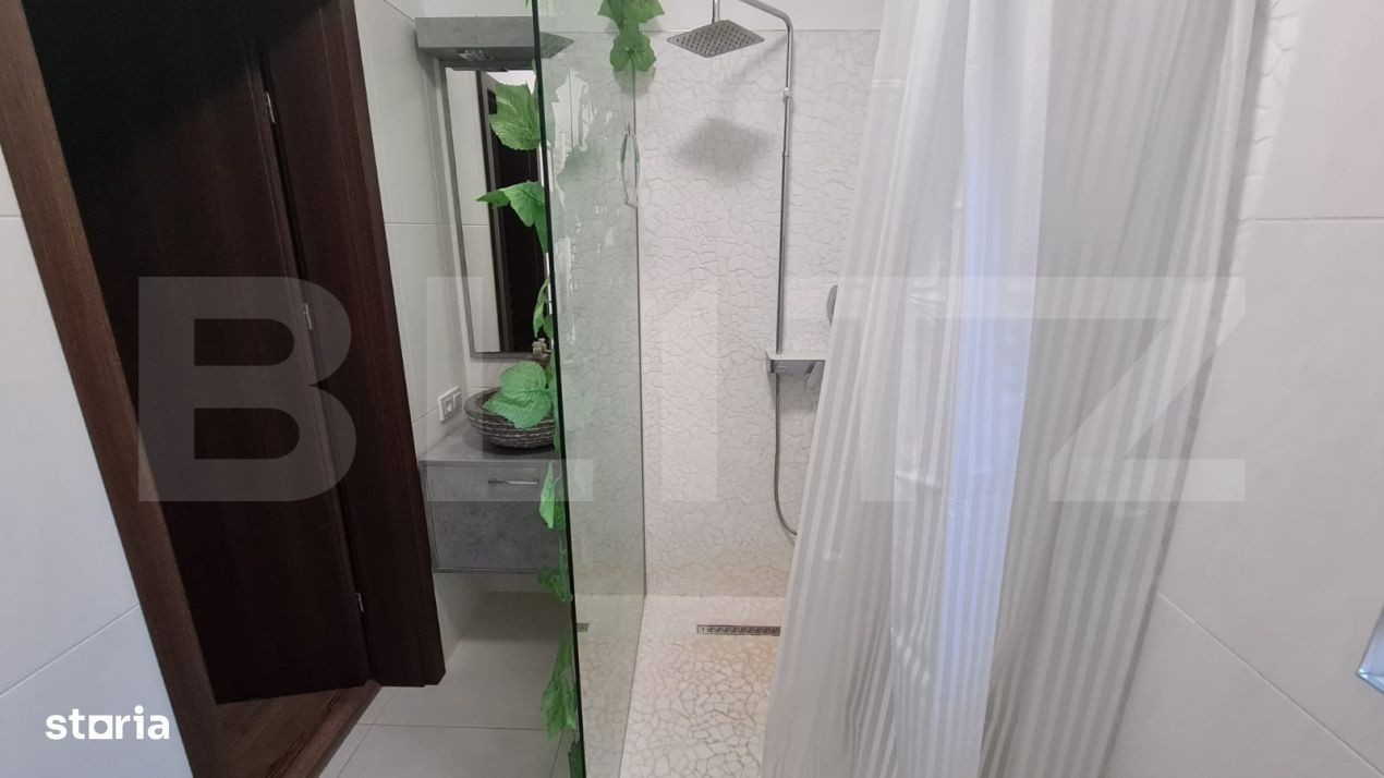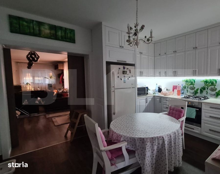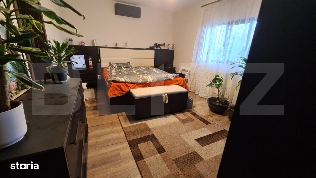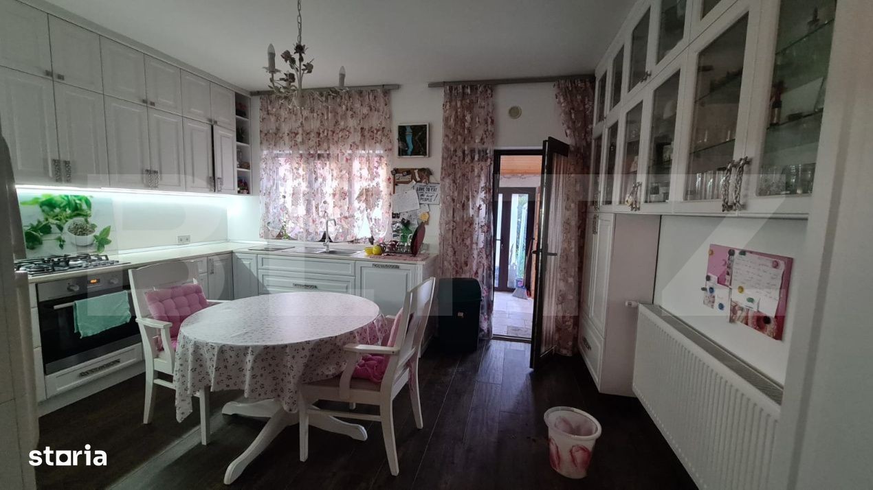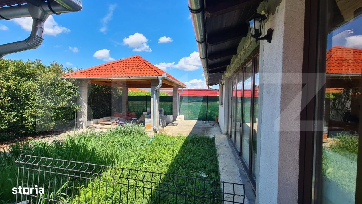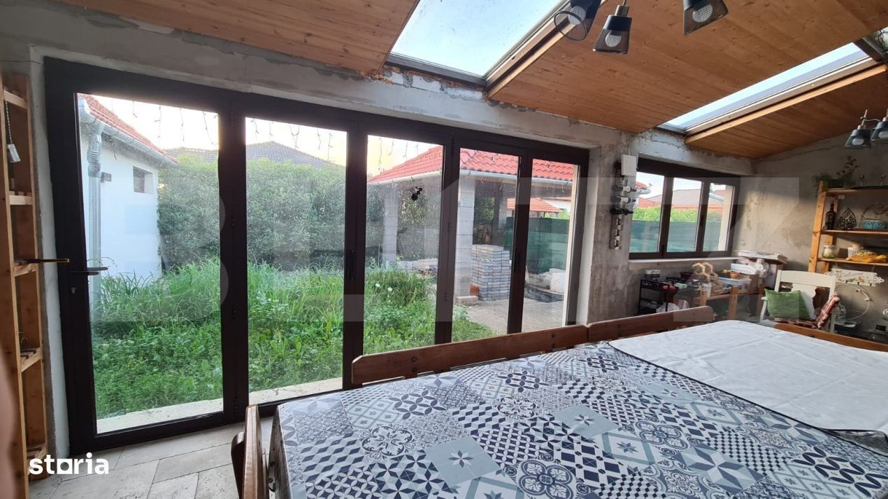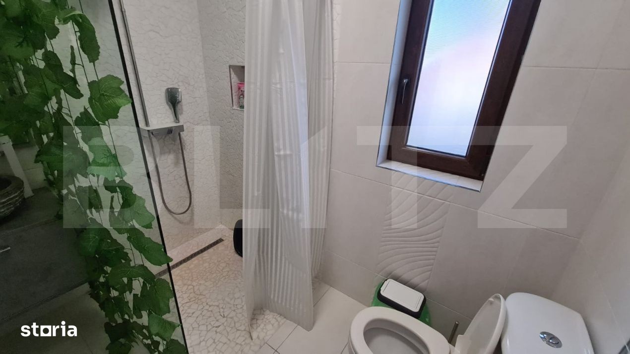 Blitz va oferă spre vânzare o locuință confortabilă, bine compartimentată, situată într-o zonă liniștită, ideală pentru familii sau persoane care își doresc intimitate și acces rapid către oraș. Proprietatea se vinde la pretul de 180.000 euro, negociabil doar cu mobila de bucătărie si electrocasnicele incluse. Detalii generale: Suprafață casă : 153 mp Suprafață teren: 5 ari Terasă închisă: 27 mp (cu luminator, fereastră panoramică, pardoseală din travertin și sobă de teracotă) Garaj: 40 mp (construit din BCA, izolat, cu robinet de apă și acces supravegheat) Casă construită din cărămidă, izolată cu polistiren de 10 cm Acoperiș cu țiglă de beton, pod mare, înalt și izolat Compartimentare inteligentă: 3 dormitoare 2 băi Sufragerie Bucătărie Verandă Cameră tehnică (pentru mașina de spălat + debara) Cămară Dotări și finisaje de calitate: Încălzire cu microcentrală pe gaz 2 aparate de aer condiționat marca Daikin Uși exterioare și ferestre din termopan Teren pavat, prevăzut cu 3 robinete exterioare și 1 robinet în garaj Racord complet la utilități: apă, gaz, electricitate, fosă septică funcțională conectata la canalizare. Sistem de supraveghere video pe fiecare latură a casei Facilități suplimentare: Terasă generoasă, închisă, ideală pentru relaxare în orice sezon Zonă amenajată pentru colț de grătar acoperit Pentru informații suplimentare sau pentru a programa o vizionare, vă rugăm să ne contactați.