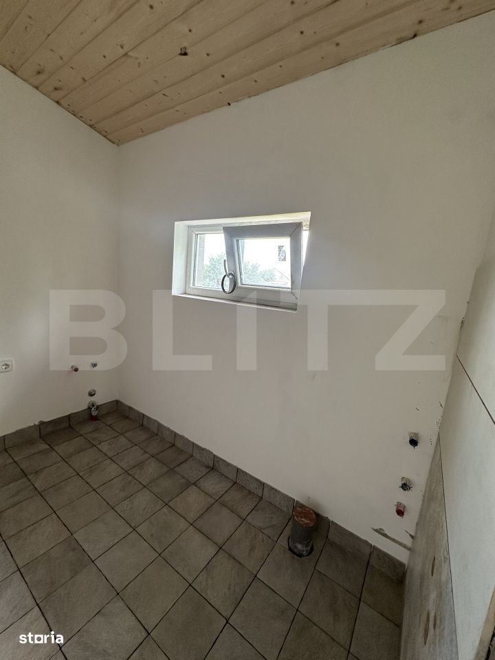 Blitz oferă spre vânzare o casă situată în localitatea Lazuri, într-o zonă liniștită, ferită de aglomerație, ideală pentru cei care își doresc un cămin modern, confortabil și cu acces rapid către oraș, dar cu avantajele traiului într-un mediu curat și aerisit.Casa este construită pe un singur nivel (plan parter), din cărămidă, având o suprafață utilă de 112 mp și este amplasată pe un teren de 450 mp, care oferă suficient spațiu pentru grădină, loc de joacă, relaxare sau extindere ulterioară.Compartimentarea este bine gândită și funcțională, compusă din trei dormitoare,un living spațios cu bucătărie open space, doua băi,o cămară,o cameră tehnică si o terasă din lemn, acoperită, ideală pentru momente de relaxare.Locuința se vinde în stadiu semifinisat, fiind gletuită integral, ceea ce oferă avantajul de a fi personalizată și finisată după gustul noului proprietar.Casa este dotată cu încălzire în pardoseală, geamuri și uși din profil Rehau (PVC de calitate superioară, cu izolare eficientă), iar exteriorul este complet izolat cu polistiren de 10 cm. Acoperișul este prevăzut cu pod izolat și podit cu scândură, oferind spațiu suplimentar de depozitare. Proprietatea este racordată la toate utilitățile necesare: apă, canalizare, curent trifazic. Este o locuință solid construită, cu structură sănătoasă și lucrări realizate cu materiale de calitate, care poate fi finisată relativ ușor și transformată într-o casă complet funcțională și confortabilă, gata să devină un cămin primitor pentru o familie sau un cuplu.