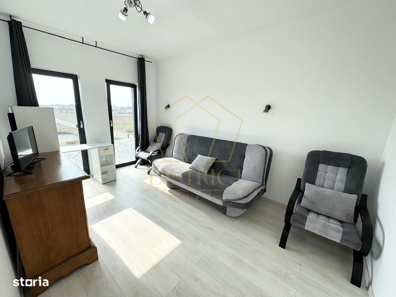 District Real Estate va prezinta spre vanzare o casa cu 3 camere si 2 bai, situat in Giiroc, foarte aproape de Lidl, Mega Image, mijloace de transport in comun si multe alte puncte de interes. Duplexul se desfasoara pe o suprafata utila de 91mp. Compartimentarea proprietatii este urmatoarea: Parter: - Hol acces - Bucatarie inchisa - Living - Baie - Terasa Etaj: - Hol acces - Baie dotata cu cada - 2 Dormitoare Confortul termic este realizat prin pardoseala cu ajutorul centralei proprii. Se vinde complet mobilat si utilat. Pretul de vanzare este de 129 000 euro. Oferim consultanta si solutii financiare in vederea obtinerii unui credit imobiliar avantajos, cu ajutorul colaboratorilor nostri. Pentru vizionari si alte detalii va stam la dispozitie.