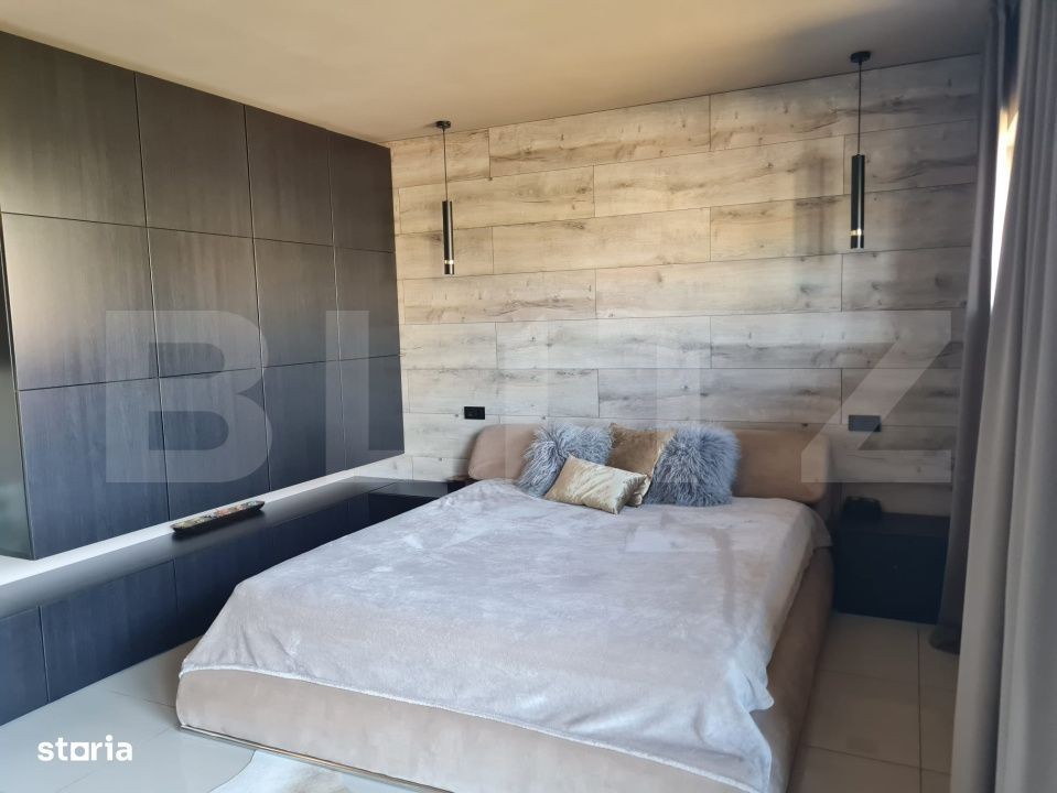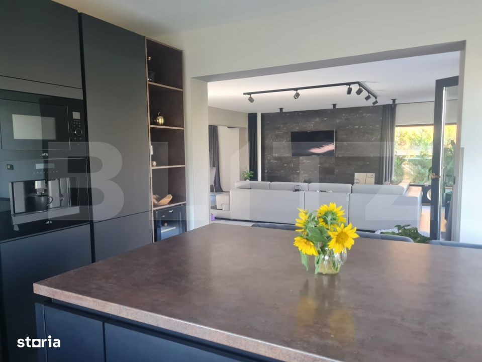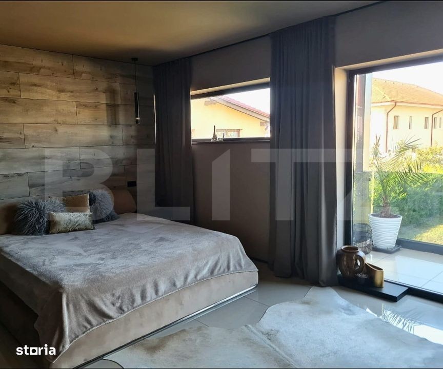 Blitz va propune spre vanzare o casa individuala intr-o zona liniștită, aflată la doar cateva minute de lac, ideală pentru familii sau pentru cei care doresc liniste si natura in jur. Proprietatea are un teren generos de 780 mp, cu o suprafață construită de 270 mp și 205 mp utili. Este compartimentata astfel: Parter: •Bucătărie open space cu posibilitate de inchidere •Dining •Living generos •Dormitor sau birou •Baie de serviciu •Cameră tehnică La Etaj: •4 dormitoare ( 1 dormitor matrimonial cu baie) •2 băi •3 balcoane Dotări și facilități: •Toate utilitățile: apă, gaz, canalizare •Drum asfaltat •Încălzire în pardoseală •Aparate de aer condiționat în camerele de la etaj, pe casa scării și în living •Curte de aprox. 450 mp -2 terase generoase de 25 mp fiecare •Împrejmuită cu brazi Leylandi, pentru intimitate •Foraj propriu + sistem de irigare prin picurare pe ambele laterale Daca v-am starnit interesul va asteptam cu drag la vizionare!