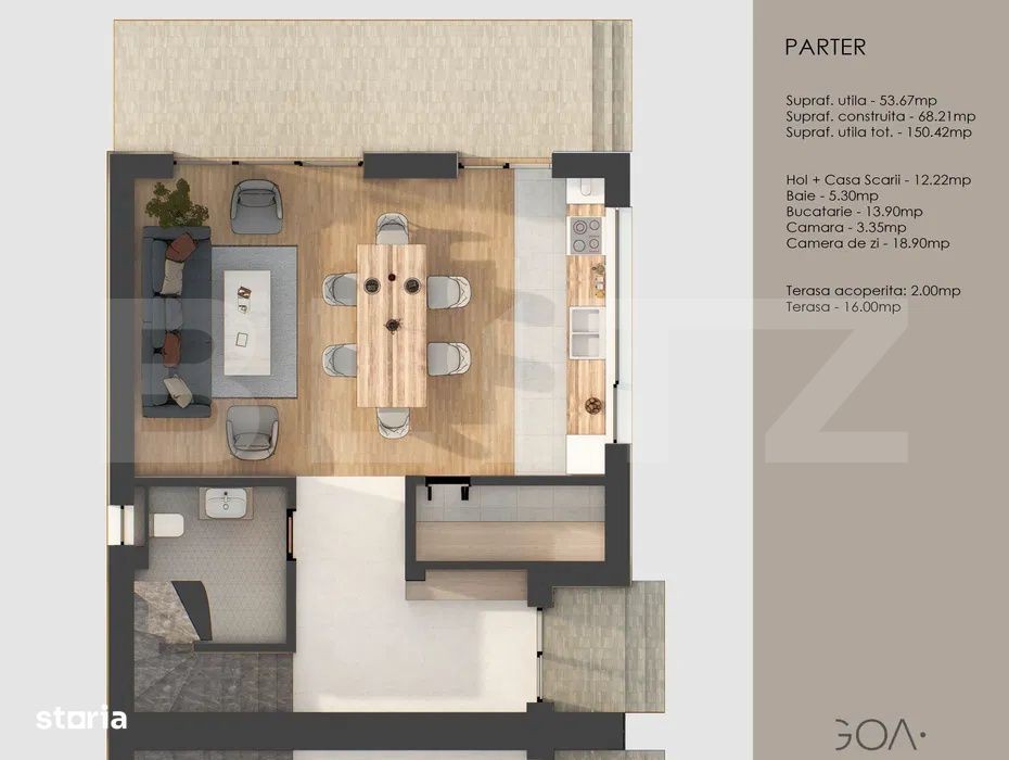 Blitz va prezinta o casa amplasată strategic în cartierul Tractorul, la doar 2 minute de Coresi Mall, această casă tip duplex oferă 208 mp utili in total din care 151 mp locuibili și 57 mp de terase si balcoane. Suprafata construita 248 mp. Pe langa spatiul disponibil in curte mai avem o parcela cu drept de servitute cu piciorul sau cu mașina in favoarea proprietarilor de la acest duplex. Dotată cu materiale de înaltă calitate și încălzire în pardoseală integrală, această proprietate reprezintă o investiție inteligentă pentru o viață modernă și confortabilă. Cu un regim de înălțime P+2, casa este amplasată pe o stradă privată, care se va securiza cu barieră pentru intimitate și siguranță. Cu un design inteligent, locuința dispune la parter de un hol primitor, o baie, spatiu de depozitare, bucătărie si living luminos, ambele cu acces direct într-o terasă primitoare. La etajul 1, găsiți un hol spațios, un dormitor matrimonial cu baie proprie și nisă pentru dressing. De asemenea, beneficiați de încă două dormitoare cu balcon și o baie comună. Etajul 2 oferă un dormitor master de 20 mp, o alta baie moderna si un dresing, si o terasă generoasă de 30 mp pentru momente relaxante. Proprietatea este înconjurată de un teren liber de 125 mp, cu construcție realizată din materiale de calitate, asigurând confort termic și fonic. Construcția este realizată cu materiale de calitate, cum ar fi caramida caramida de 30 cm la exterior, peretii despartitori din caramidă la interior, structura pe cadre și tamplarie Gealan S8000 cu 3 foi de sticlă, asigurând confortul termic și fonic. Beneficiați de încălzirea în pardoseală integrală cu centrala Ariston wi-fi şi planşeu ceramic LEP, care asigură economie de energie. Mai mult, finisajele vor fi alese de viitorii proprietari într-un buget prestabilit, astfel încât să vă puteți personaliza casa după propriul gust și preferințe. Predare SEPTEMBRIE 2025 ! Pentru informatii suplimentare si vizionari, va stau la dispoziție! Va invit la vizionare!