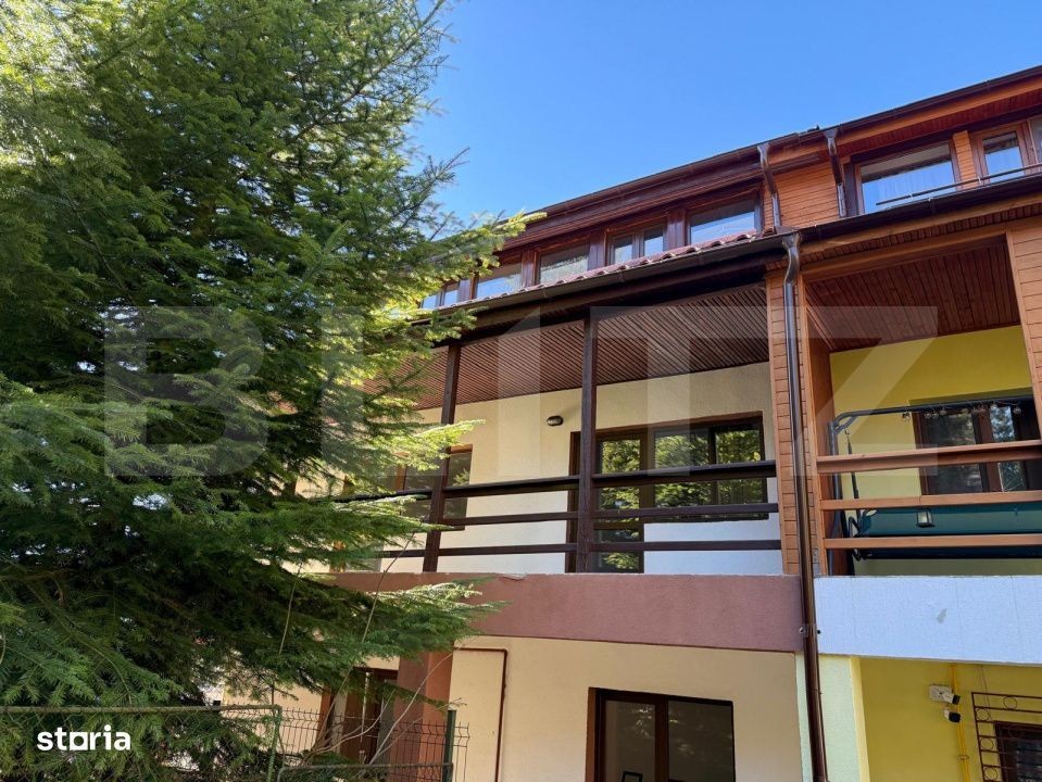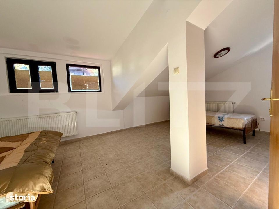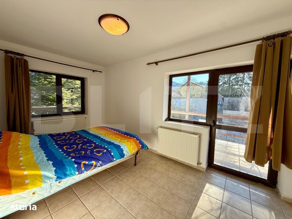 Vă propunem spre vânzare o casă situată central, în zona Cioplea din Predeal, în imediata apropiere a pârtiei Clăbucet, cu acces facil și utilități complete. Proprietatea este potrivită atât ca locuință de vacanță, cât și pentru uz rezidențial sau investiție. Compartimentare -Subsol: cameră tehnică -Parter: living generos de aproximativ 60 mp, bucătărie, baie -Etaj 1: 3 dormitoare, o baie -Etaj 2: 2 camere, o baie Proprietatea dispune de 5 dormitoare și 3 băi, fiind ideală pentru familie extinsă sau pentru utilizare în regim turistic. Vedere & amplasare Din balcon se poate admira pârtia Clăbucet, precum și Crucea Caraiman, un avantaj important al poziționării. Zona este asfaltată, iluminată public și beneficiază de mijloace de transport în comun. Utilități & facilități -Apă -Canalizare -Curent electric -Gaz (centrală proprie) -Acces auto direct din șosea -Parcare în curte Curtea este comună, cu o suprafață totală de aproximativ 700 mp. Informații suplimentare -Se acceptă schimburi cu proprietăți similare în București, Eforie Nord sau alte zone -Destinație: rezidențială / de vacanță -Proprietatea reprezintă o oportunitate de investiție, datorită poziției centrale și apropierii de pârtie