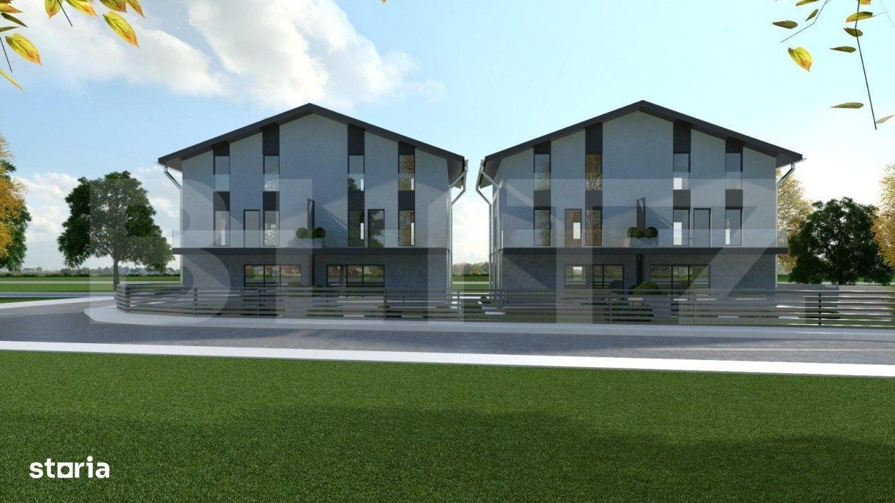 BliTZ vă prezintă un proiect nou de 4 locuințe SMART pe structură metalică, grupate în doua duplexuri, având un design aparte, care confirmă clienților, calitatea construcțiilor și a materialelor folosite. În mijlocul câmpurilor verzi, cu o priveliște uluitoare spre vârfurile de munte din Piatra Mare si Postăvarul, dezvoltatorul imbină toate avantajele unui stil de viață sănătos, oferind o combinație intre liniște, plăcere și confortul unei case la țară. Cea mai bună echipă de arhitecți s-au concentrat pe un design eficient și spațios. Camerele mari si ferestrele multiple, creeaza o atmosferă caldă și destinsă. Bucataria este conceputa pentru a fi integrata perfect in spatiul deschis si luminos. In functie de preferinte este disponibila si varianta cu bucatarie inchisa devenind astfel o unitate separata. Reglarea individuală a circuitului de incălzire prin pardoseală, termoizolație de inaltă calitate, reduc costurile cosiderabil. Clienții au la dispoziție o gradină privată și o terasa spatioasa cu priveliste spre munte. Fiecare imobil este livrat cu 2 locuri de parcare proprietate privata. - Etapele construcției detaliate - I. Fundatie - rețea de grinzi din beton armat cu adâncime -1.55m față de cota 0. - placă din beton armat izolată cu polistiren extrudat II. Pereți exteriori - cadre metalice contravântuite cu stâlpi și grinzi dispuse pe cele 2 direcții principale - LA EXTERIOR - inchideri cu OSB - izolație cu polistiren - tencuială - LA INTERIOR este folosită izolație cu spumă poliuretanică bicomponent cu celulă închisă: - izolarea cu spuma poliuretanică este mult mai eficientă decât metodele tradiționale precum vata minerală sau celuloza. Întrucât spuma își mărește volumul, sigilează și etanșează complet zona pe care este aplicată. - este un produs de izolare compact care nu permite schimb de caldură cu exteriorul, izolația NEFIIND DISPUSĂ LA MUCEGAI! - calități foarte bune de izolare, reușind să reducă considerabil cheltuielile de incălzire, pe o durată de viață foarte întinsă! - placaj cu plăci tip rigips la interior III. Planseele între nivele - planșee metalice contravântuite în plan cu rol de diafragme orizontale - OSB - izolație polistiren extrudat - incălzire în pardoseală - șapă - finisaj - intrados izolat cu spumă poliuretanică cu celulă deschisă pentru protecție eficientă fonic și termic IV. Acoperiș - Învelitoare tip retropanel duo, una dintre cele mai noi soluții disponibile în materie de acoperiș care conferă un aspect elegant și modern. -șarpantă metalică cu structură de rezistență metalică cu contravântuiri (se pot monta adițional ușor și rapid sisteme de incalzire solara si panouri fotovoltaice) - OSB - la interior izolatie cu spuma poliuretanica bicomponent cu celula inchisa: - izolația cu spumă este impermeabilă; nu absoarbe apa, nu permite pătrunderea apei sau a umezelii. - etanseaza foarte bine si nu permite pătrunderea alergenilor din exterior, păstrând un aer mai curat la interior - placaj cu plăci tip rigips la interior. Modalitate de plata 30% avans 30% la inchidere acoperis 30% la finalizare instalatii interioare 10% la intabulare - daca se intabuleaza inainte de finalizare.