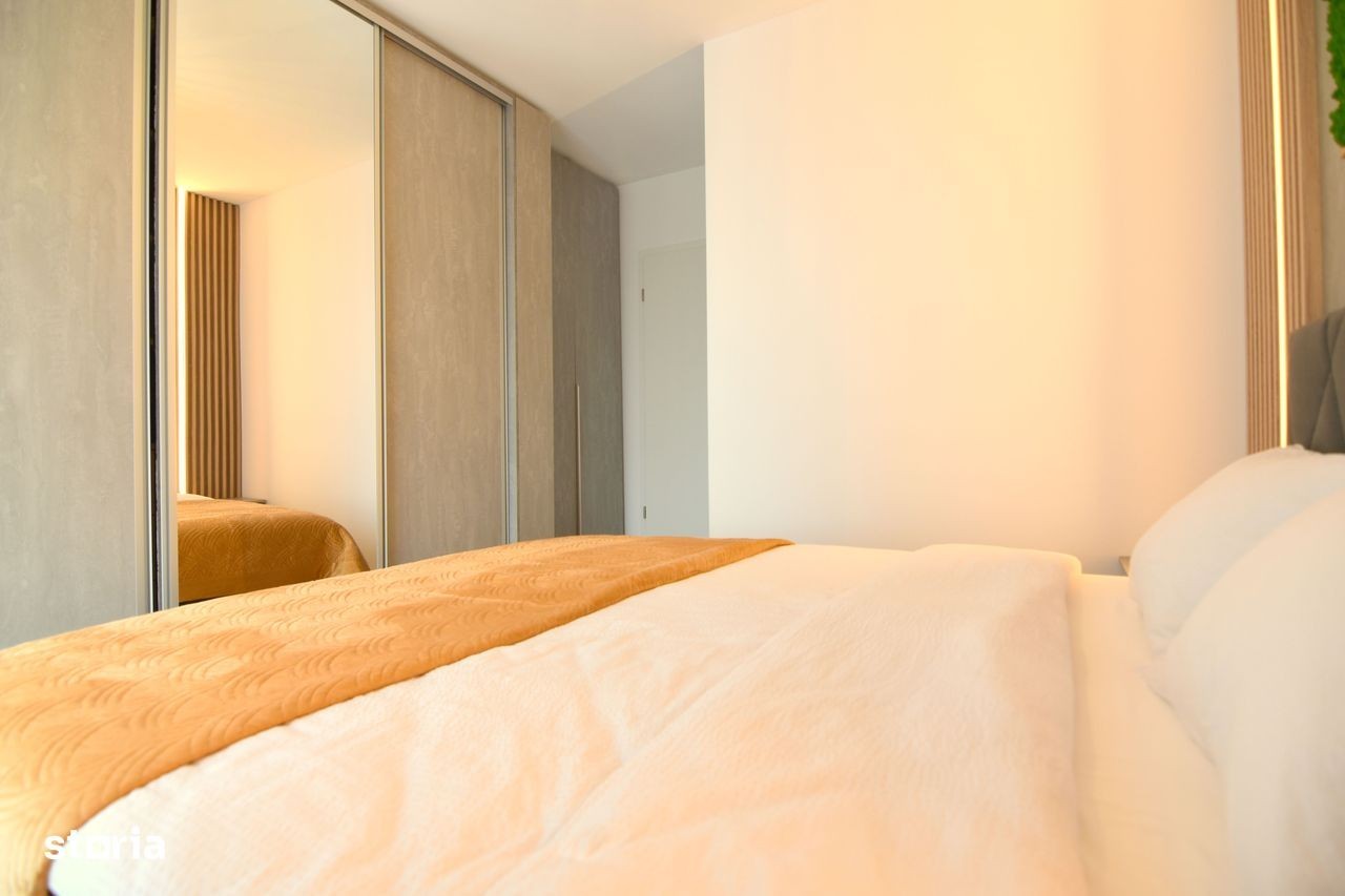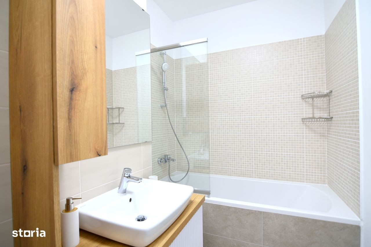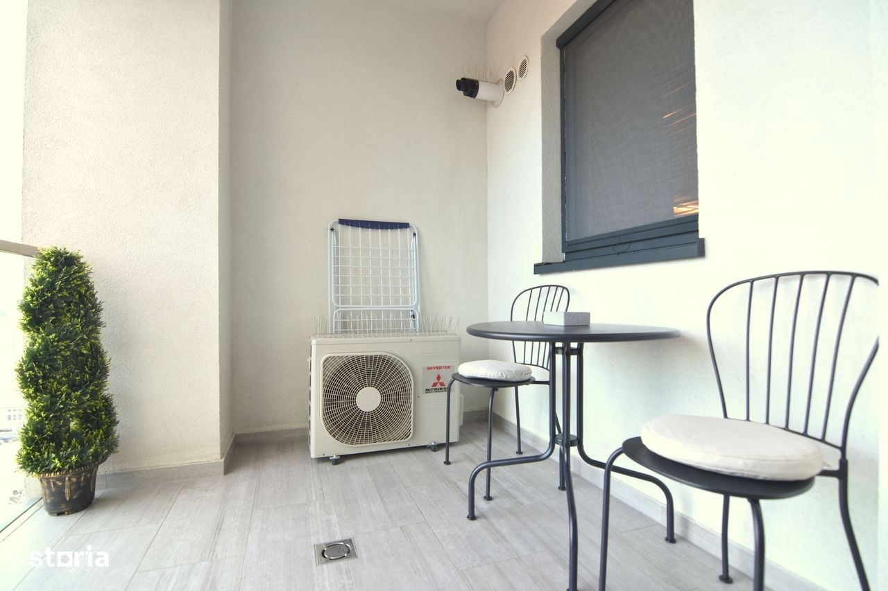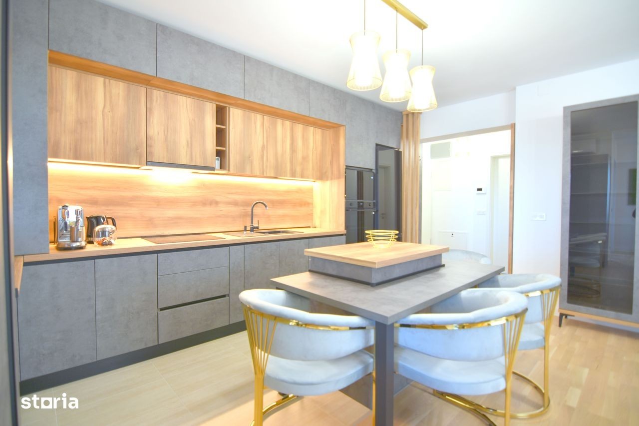 Se ofera spre inchiriere un apartament nou situat într-un ansamblu rezidențial bine plasat, cu acces facil la diverse puncte de interes. Proprietatea are o suprafață utilă de 59 mp si prezinta urmatoarea compartimentare interioară: - Spațiu de living open-space - Zonă office luminoasă cu acces la terasă - Bucătărie open-space cu zonă de dining - Dormitor matrimonial - Baie cu cada - Antreu Finisaje Premium: Parchet lemn triplustratificat, tamplărie din aluminiu cu 3 sticle, incălzire în pardoseală, Ac Mitsubishi Invertor. Facilități Ansamblu: Servicii de pază pe timpul nopții, supraveghere video 24/24. Mobilierul este realizat pe comandă pentru o eficientizare maximă a spațiului. Apartamentul se inchiriaza mobilat si utilat la pretul de 650 Euro/luna, in pret fiind inclus si un loc de parcare subteran cu acces securizat.
