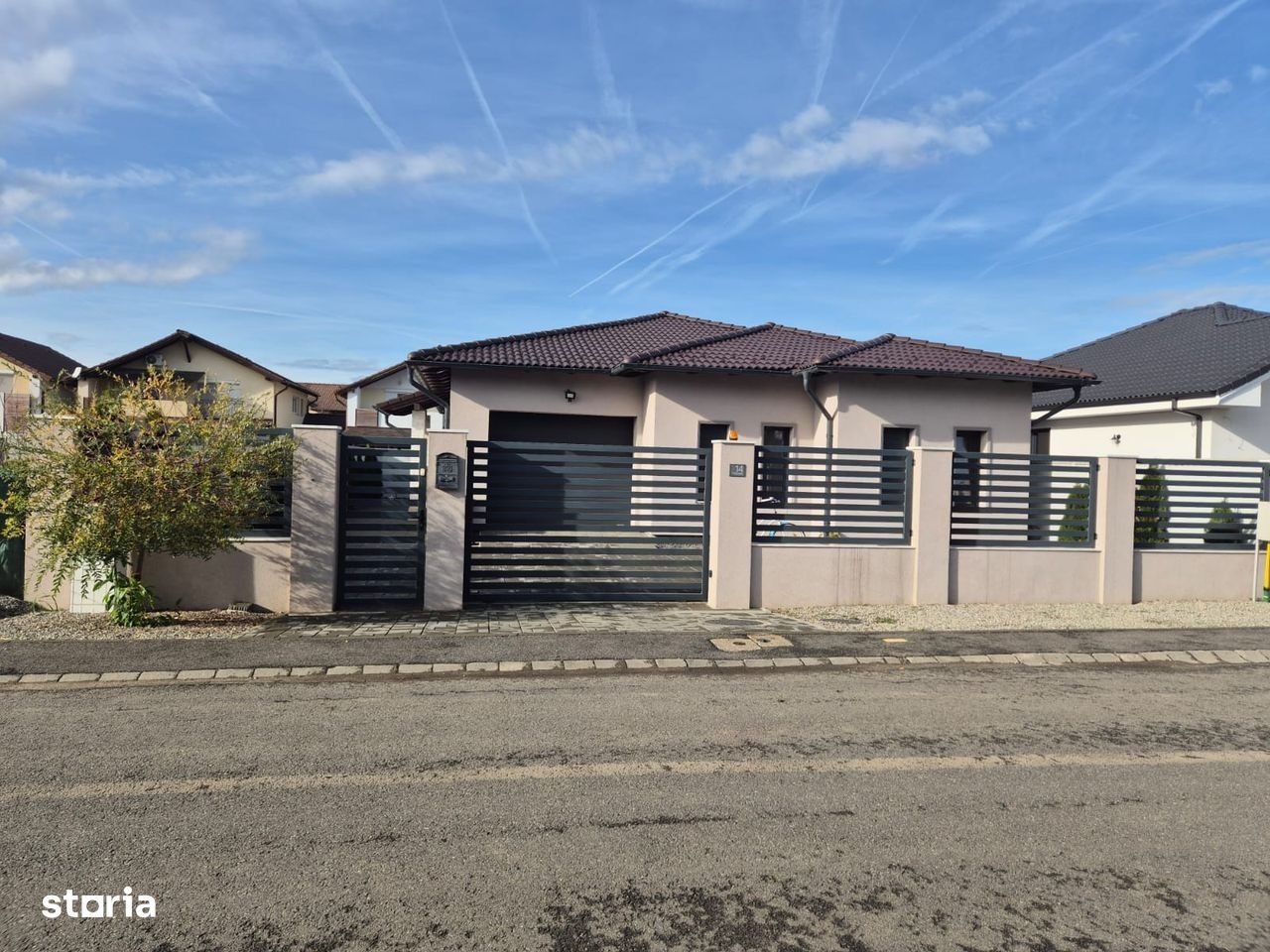 Consecvent Imobiliare vă propune spre vânzare o locuință amenajata cu designer, construită în anul 2021, situată într-o zonă liniștită a cartierului Via Carmina, ideală pentru o familie care caută confort, funcționalitate și eficiență energetică. Casa este la sol, pe un singur nivel (parter), cu o suprafață construită de 171 mp, amplasată pe un teren de 420 mp.