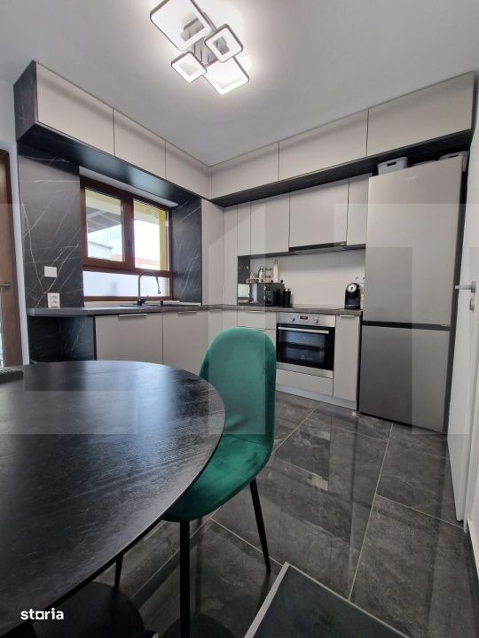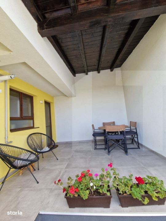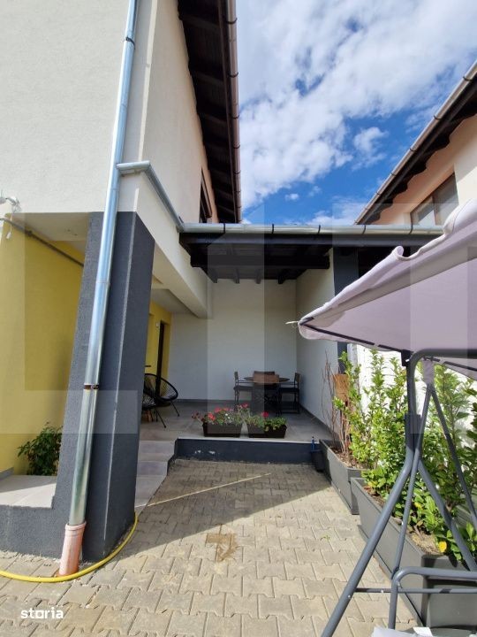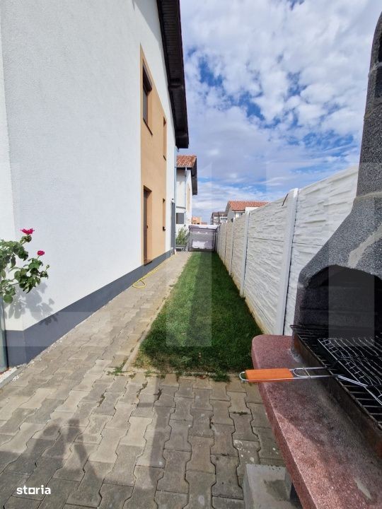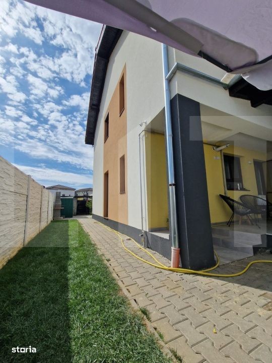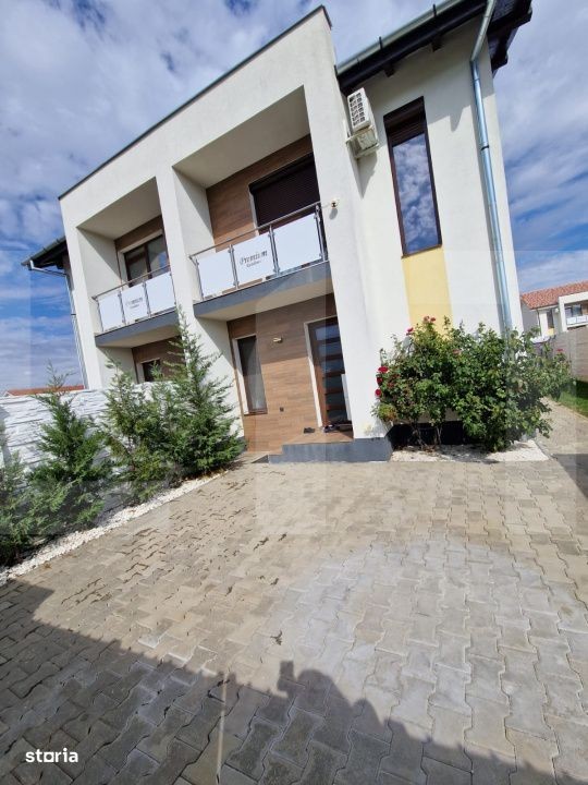 Blitz Imobiliare vă propune spre vânzare un duplex modern, construit în 2023, situat într-o zonă liniștită și în plină dezvoltare - Calea Urseni, strada Gălbenelelor, Giroc. Detalii generale: An construcție: 2023 Suprafață utilă: 76 mp Terasă acoperită: 15 mp (dotată cu masă și scaune) Suprafață teren: 150 mp Parcare: 3 locuri în fața casei Regim de înălțime: P + 1 + pod (placă de beton peste etaj) Compartimentare: Parter: Living Bucătărie separată Baie Debara Etaj: Hol 2 dormitoare (unul cu balcon) Baie Pod: Izolat cu polistiren 20 cm Dotări și facilități: Încălzire în pardoseală (centrală pe gaz, 6 termostate independente) Aer condiționat Rulouri + camere de supraveghere Terasă acoperită complet utilată Curte amenajată, grătar Se vinde complet mobilat și utilat Mobilier și electrocasnice incluse Living: canapea extensibilă, balansoare, masă + scaune, bibliotecă, comodă Bucătărie: mobilier la comandă, mașină de spălat vase, plită inducție, cuptor, hotă, frigider, masă + scaune, TV Baie parter: duș Debara: mașină de spălat rufe Dormitor cu balcon: TV, birou, dulap Dormitor matrimonial: pat 180x200, noptiere, dulap, comodă Baie etaj: cadă Utilități: Curent electric Gaz Apă de la rețea Canalizare Fibră optică - TV + internet Alte informații: Casa este locuită, dar se poate elibera imediat Se acceptă credit imobiliar În apropiere: Zone 2, Centura Timișoara, supermarketuri (Mega Image, Profi), farmacie, Continental Stația de autobuz la 400 m Pentru mai multe detalii sau programarea unei vizionări, nu ezitați să ne contactați!