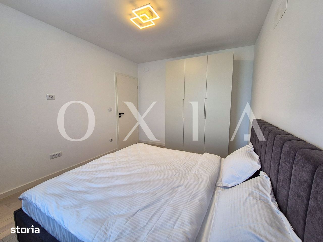 OXIA va prezinta spre inchiriere apartament nou cu 2 camere situat in Dumbravita, acces de pe strada Ferventia. Imobilul este construit in 2025, proprietatea se afla la etajul 1/3, avand o suprafata utila de 54 mp si o terasa de 6 mp. Compartimentare: * Hol acces * Spatiu depozitare * Bucatarie deschisa spre un living generos * Dormitor * Baie dotata cu cabina de dus si geam * Terasa cu iesire din living Detalii si finisaje: Apartamentul pune accent pe calitate, avand amenajari premium: gresie/faianta de top, ferestre PVC cu geam termopan, usi interioare din MDF, usa de intrare metalica, vopsea lavabila, etc. Confortul termic este garantat de centrala proprie pe gaz incalzire prin calorifere si de sistemul performant de climatizare. Beneficiati de un loc propriu de parcare suprateran. Proprietatea se inchiriaza complet mobilata si utilata. Pret: 550 EURO + TVA + garantie + comision agentie Pentru a programa o vizionare sau pentru informatii suplimentare, sunati la: