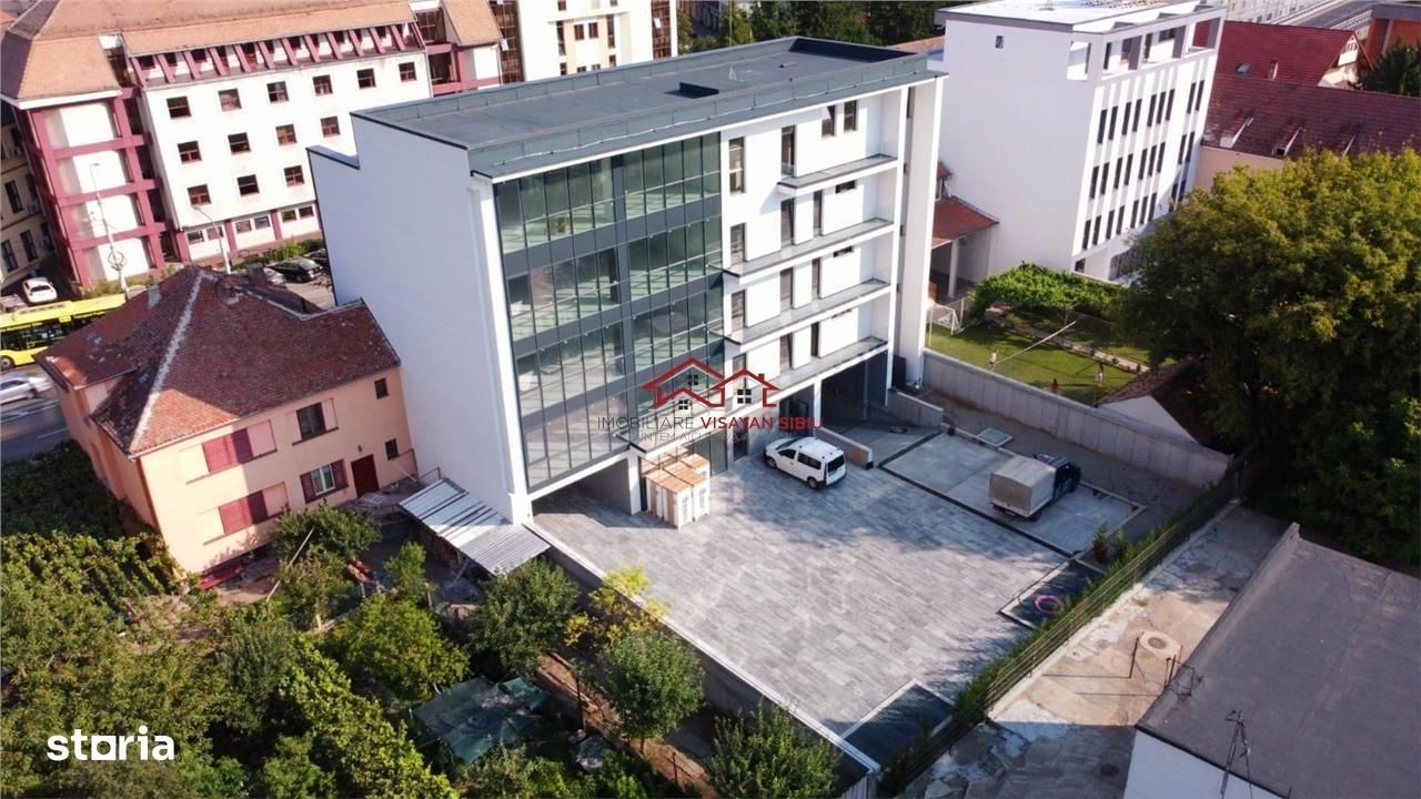 Agentie imobiliara va propune spre inchiriere, in reprezentare exclusiva si in colaborare cu toate agentiile imobiliare, o cladire noua, de 1800 mp, cu 82 locuri parcare, situata, ultracentral, in orasul Sibiu, pe B-dul Corneliu Copsosu, nr.14, langa Promenada Mall Sibiu, cu acces simplu, comod si rapid in orice directie, inclusiv zona centrala si istorica, Piata Mare, Aeroportul Sibiu, Zona Industriala de Vest, Parcul National Dumbrava Sibiului, zona turistica Paltinis, etc., drumuri nationale si autostrada. Cladirea este constructie noua, finalizata in 2025, la standarde moderne, are 1800 mp si este compartimentata, astfel: SUBSOL: - 22 locuri parcare auto; - hol acces si casa scarii: - lift persoane; - trei spatii tehnice: - adapost protectie civila (buncar); PARTER : - spatiu open space; - doua bai; - hol acces si casa scarii: - lift persoane; - doua oficii: - spatiu tehnic; ETAJELE 1 - 3 : - spatiu open space: - doua bai; - hol acces si casa scarii: - lift persoane; - un oficiu; - un balcon: ETAJ 4 - penthouse: - un apartament cu 2 dormitoare si baie proprie; - hol acces si casa scarii: - lift persoane; - spatiu open space; - o baie comuna: - terasa exerioara de 125 mp; TERENUL : - cladirea este amplasata pe un teren cu suprafata totala este de 1082 mp si curtea libera permite si 10 locuri parcare. - linga cladire, optional, se poate inchiria si terenul de 1800 mp care permite 50 locuri parcare. AVANTAJE SI BENEFICII: - una din cele mai bune locatii din Sibiu; - constructie noua cu fatada de sticla la strada; - parcare sistematizata; - supraveghere video, aer conditionat,camera server, priza date, senzori incedii, sistem alarma, acces securizat; - trafic pietonal si auto; - conectat individual la toate utilitatile; - sistemul de termoizolatie exterior si termopanele de calitate optima asigura protectia termica si fonica optima; - beneficiaza de curent trifazic, generator electric si ascensor Schindler; - sistem de climatizare parter si etaj retras cu încălzire în pardoseala, iar pentru etajele 1, 2 si 3 incalzirea si racirea vor fi pe sistem VRF; - pentru optimizarea consumului de energie, se va monta si un sistem fotovoltaic complet; - are tâmplărie sucho, structură de beton și cărămidă, totul de o calitate superioară. - locatia unica permite utilzarea spatiului pentru diverse afaceri, inclusiv birou firma IT, sediu bancar, clinica medicala, etc. si poate fi amenajat conform cerințelor clientului, în anumite condiții, stabilite de comun acord; Cheia noi tale afaceri sau a noului tau punct de lucru este la noi ! Gândește-te că ai programare la banca sau la medic și ai putea ajunge imediat. Nu mai iei în calcul drumurile lungi și traficul pentru că acest imobil este generos, are foarte multe locuri de parcare și este ideal pentru orice activitate. Poate va convingeti managerul să vă relocați sau sa va mutați sediul afacerii voastre in acest imobil, zona cu potential optim pt orice business ! Spatiul cu 32 locuri parcare se poate inchiria la pretul de 20.000 euro+tva Optional se mai pot oferi inca 50 locuri parcare ! COMISION CHIRIAS 0 ! La solicitare va putem oferii si alte foto cladire, planuri, releveu-uri si film video !
