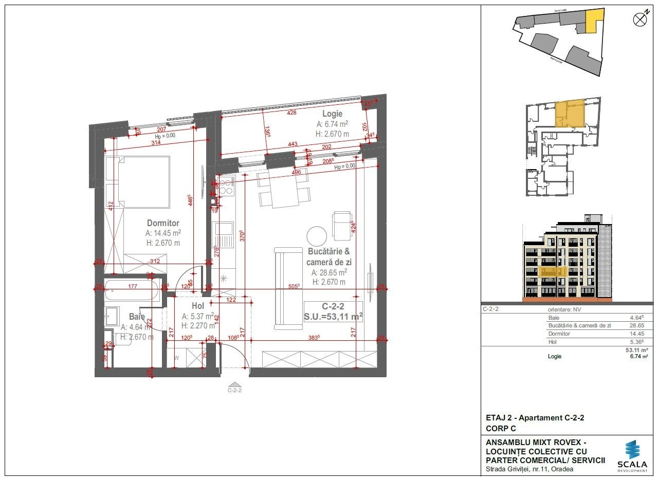 Apartament 2 camere, OpenSpace, 60mp, Scala Cetate, vedere spre Cetate