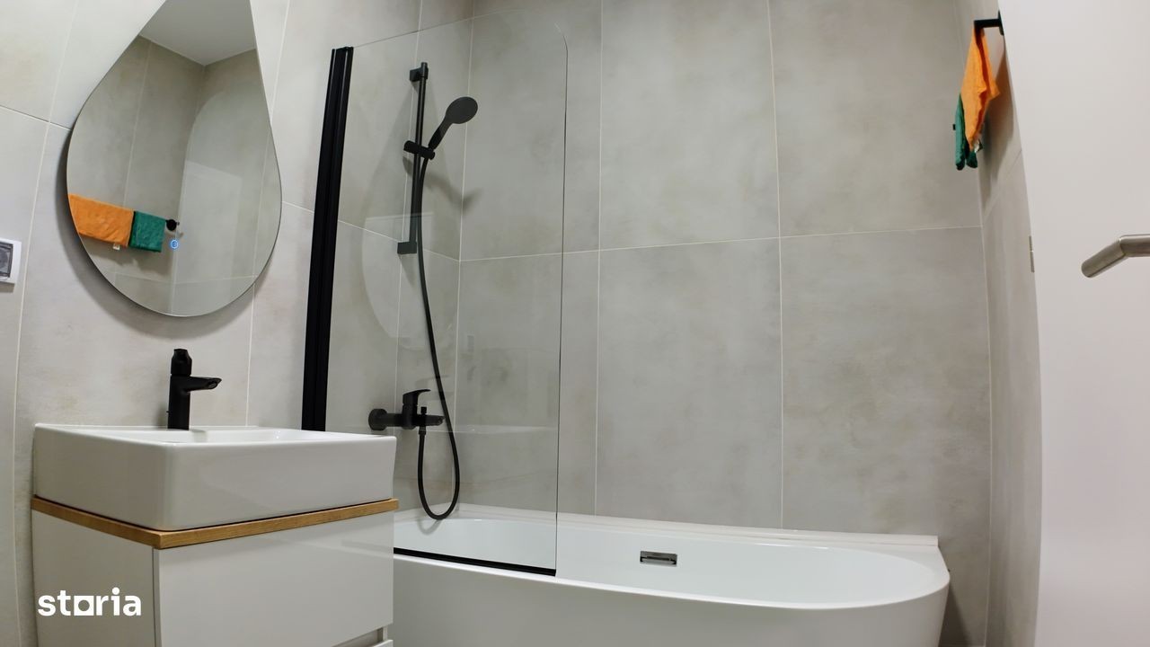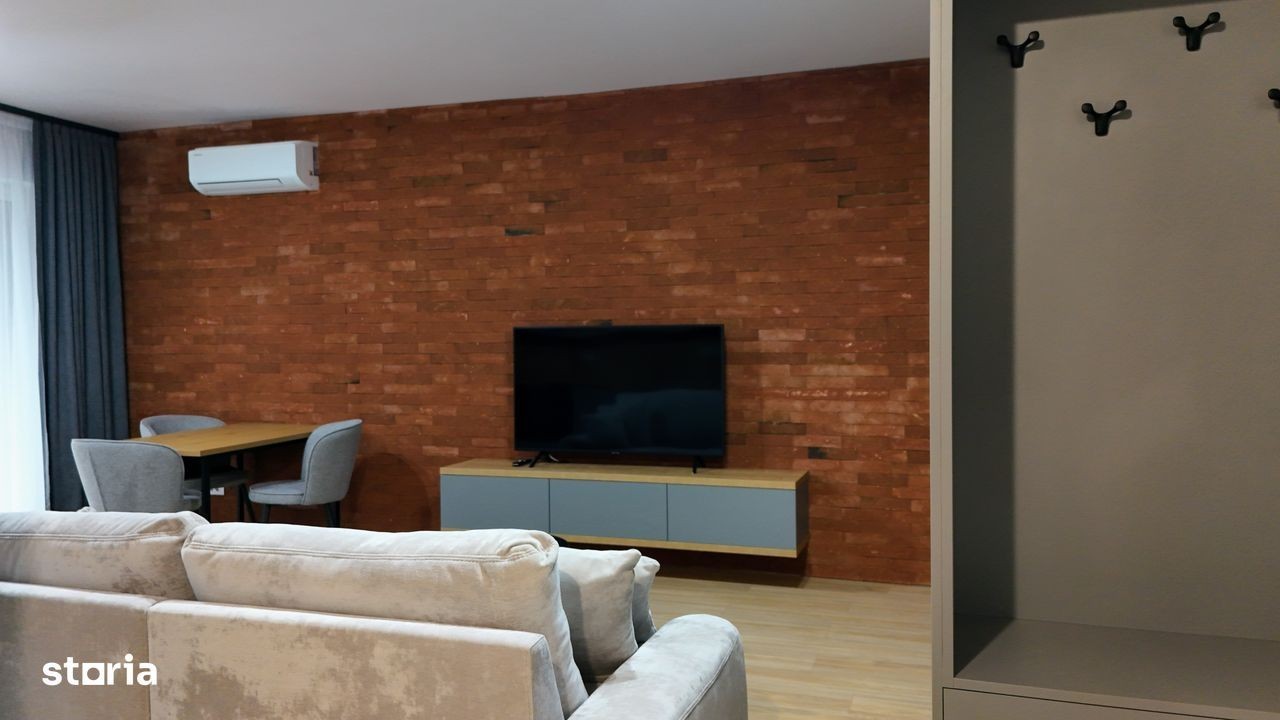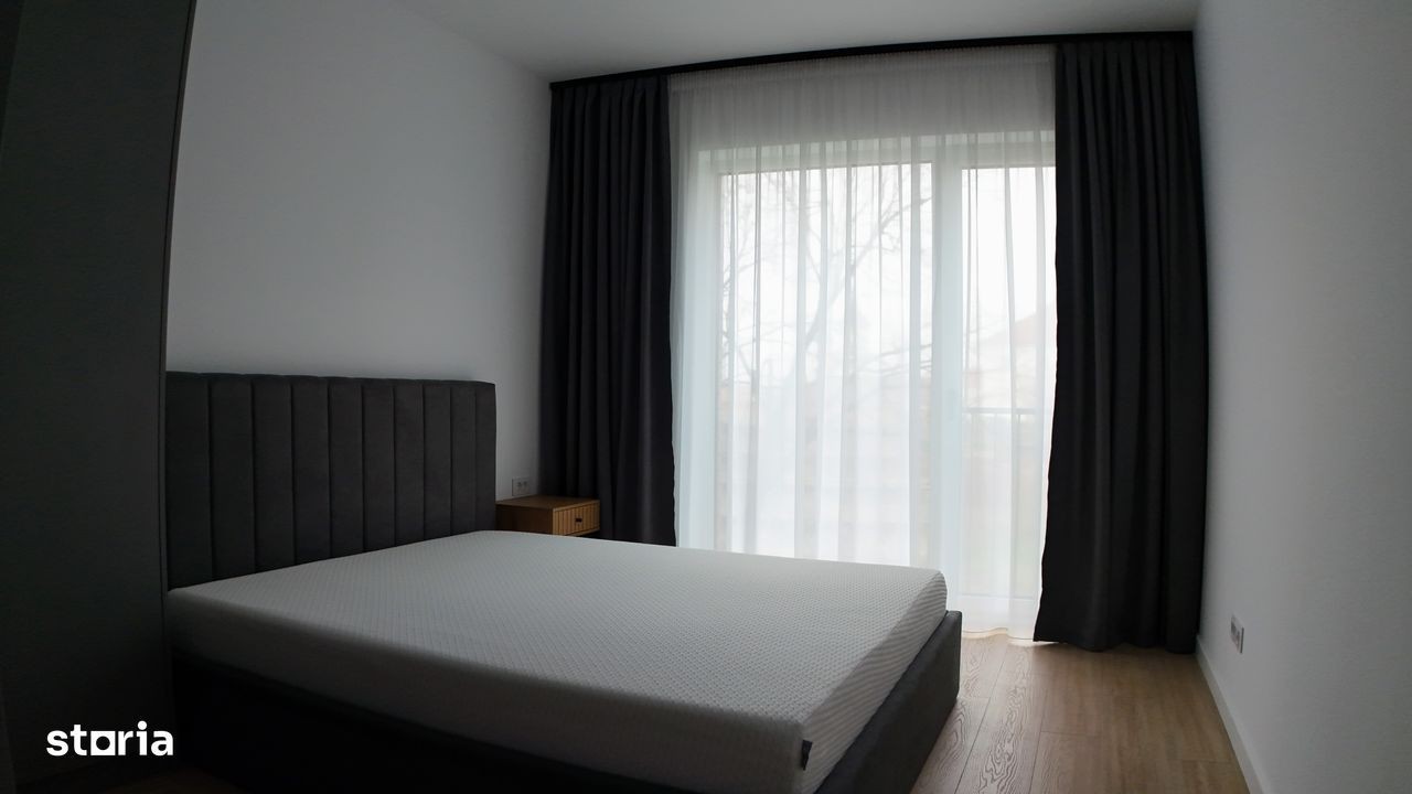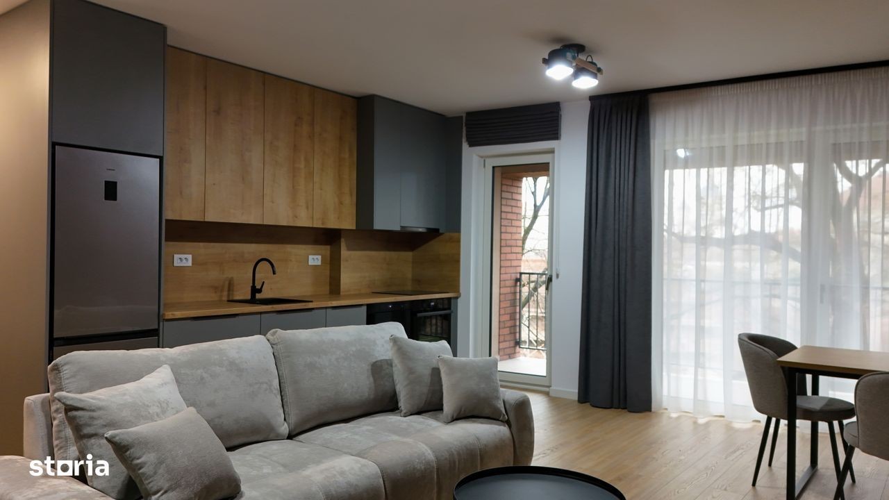 Închiriez apartament modern, 2 camere open-space, 60 mp, situat în ansamblul rezidențial Scala Cetate, Str. Griviței nr. 11, Oradea, etaj 2, cu vedere spre Cetatea Oradea și parcul cetății. Apartamentul este complet utilat și mobilat, dotat cu: cuptor electric, cuptor cu microunde, hotă, frigider, mașină de spălat vase, mașină de spălat rufe Bosch + uscător Bosch (două unități separate), televizor, aer condiționat, termostat inteligent și interfon smart controlabil de pe telefon. Parcare subterană inclusă, cu spațiu generos, loc privat cu acces prin barieră.