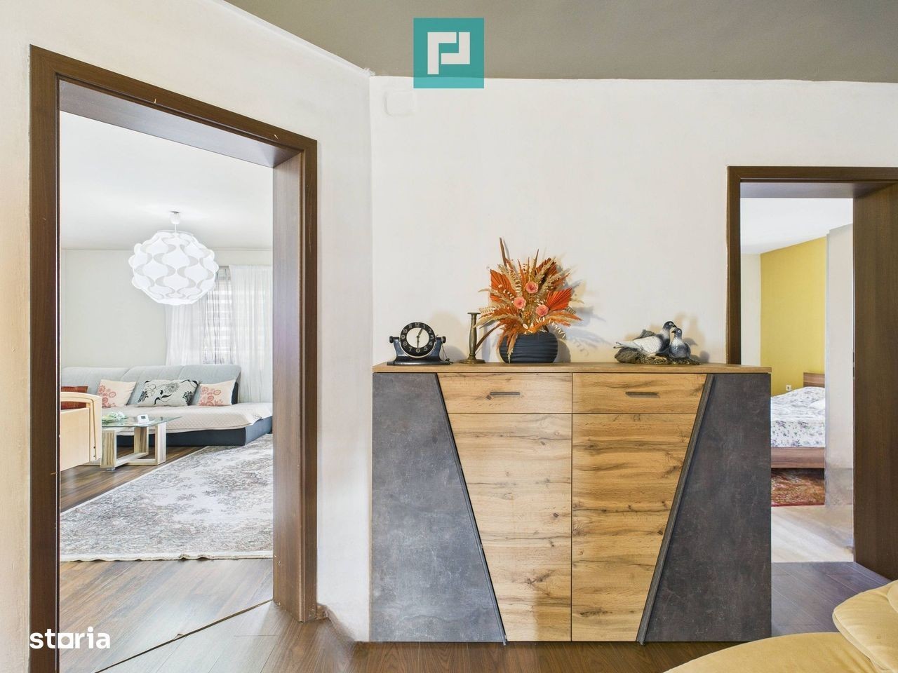 Oportunitate unică în Giroc, 2 case spațioase pe un singur teren, pentru confortul familiei tale. Cauți un loc unde să te simți acasă cu adevărat? Îți oferim o proprietate deosebită, compusă din două case mari, construite în 2002, pe un teren de 512 mp, într-o zonă liniștită și foarte căutată din Giroc. Ideală pentru două familii, rude apropiate sau pentru cine dorește să combine locuința cu o mică investiție. Casa 1 - P + M + Garaj Prima casă, cea din față, îmbină spațiul generos cu funcționalitatea perfectă: Parter - 77 mp: living luminos de 35 mp, loc de servit masa, bucătărie închisă complet mobilată și utilată, dormitor, baie cu duș și cameră tehnică. De aici se face accesul către terasa de 12,5 mp, perfectă pentru momentele în aer liber. Mansardă: 3 dormitoare primitoare, baie cu cadă de 8,40 mp și un dressing de 2,5 mp, ideal pentru organizarea garderobei. Spațiu generos, lumină naturală și atmosferă caldă - simți că intri acasă încă de la ușă. Casa 2 - P + M Cea de-a doua casă, cu actele depuse pentru intabulare, oferă și ea confortul unei locuințe moderne: Parter: living generos de 46 mp, bucătărie pe care o poți amenaja după preferințe și baie de serviciu sub scară. Mansardă: 2 camere luminoase de câte 10,5 mp, baie cu cadă de 5 mp și hol spațios cu acces către fiecare încăpere, plus un spațiu de depozitare de 2 mp. În lateral, casa mai are și magazie pentru diverse obiecte, iar curtea permite parcarea mai multor mașini. Avantaje: Panouri solare de 6 KW - energie eficientă și economii la facturi Centrală proprie cu calorifere Poartă din fier forjat, curte generoasă Zonă liniștită și foarte căutată în Giroc, Str. Mureș Această proprietate nu este doar despre patru pereți și acoperiș, ci despre spațiu pentru familie, confort și momente frumoase petrecute împreună. Consultant imobiliar : Laurențiu Caraman Telefon :