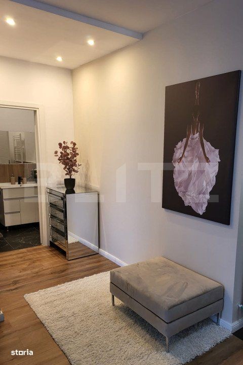Blitz va propune spre vanzare apartament cu 2 camere, pozitionat intr-un ansamblu din Floresti. Apartamentul are o suprafata utila de 50 mp si este situat intr-un imobil nou, la etajul 3. Compartimentarea se prezinta astfel: bucataria open space cu livingul, hol, 1 dormitor, o baie, balcon. Se vinde la stadiul Finisat/ mobilat/ utilat, finisajele fiind de o calitate superioara, electrocasnice, semineu etc, baia utilata complet, instalatii trase la pozitie, centrala termica si calorifere, geamuri termopan cu tamplarie PVC si usa metalica antiefractie la intrare cu acces smart, aer conditionat, interfon cu touchscreen si camera video. Se poate achizitiona loc de parcare subteran la pretul de 6000 euro sau exterior la 4000e