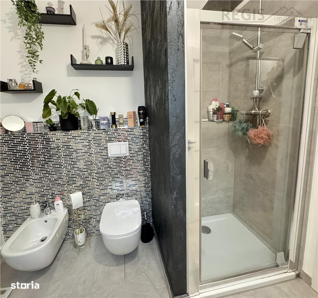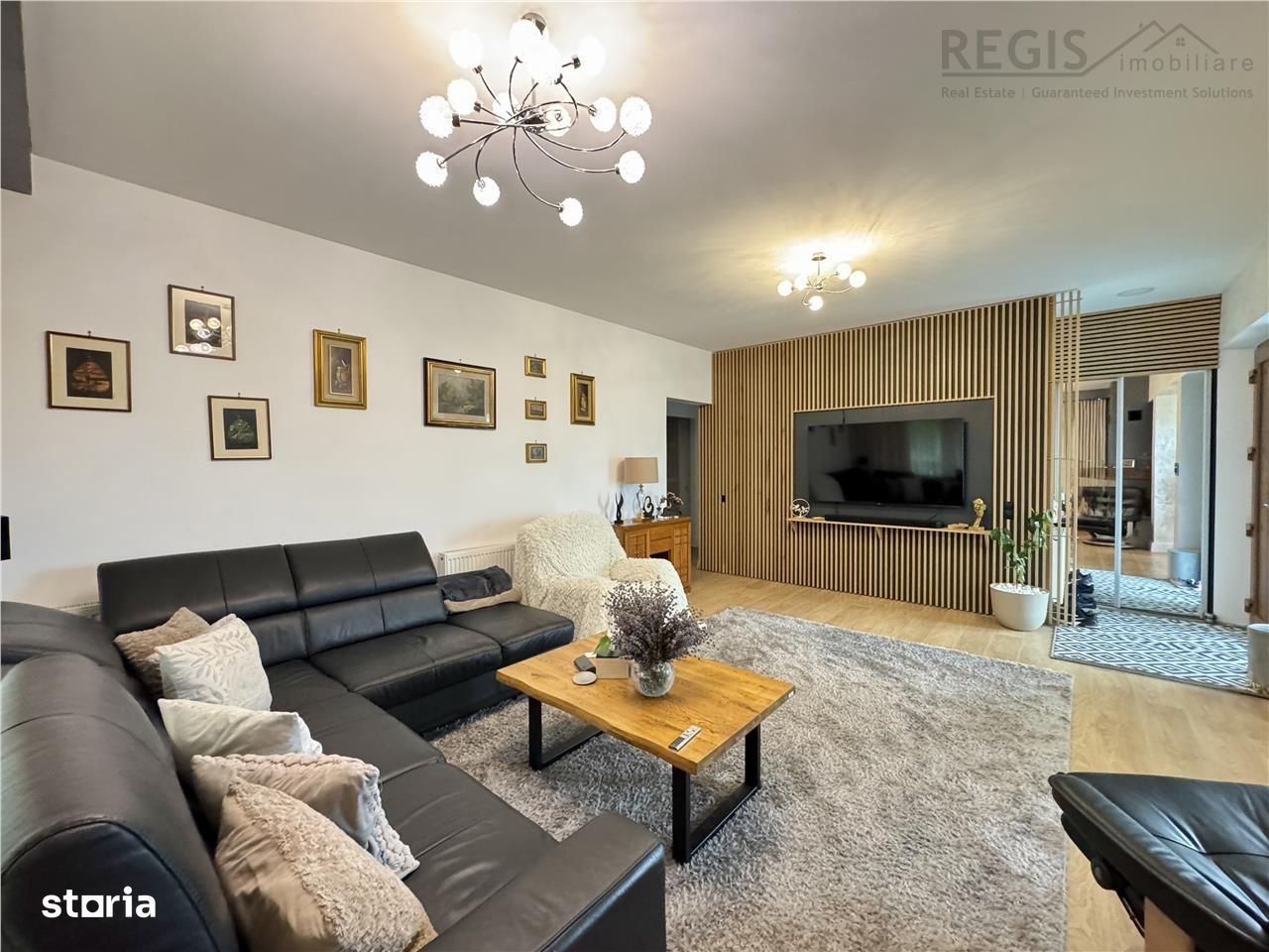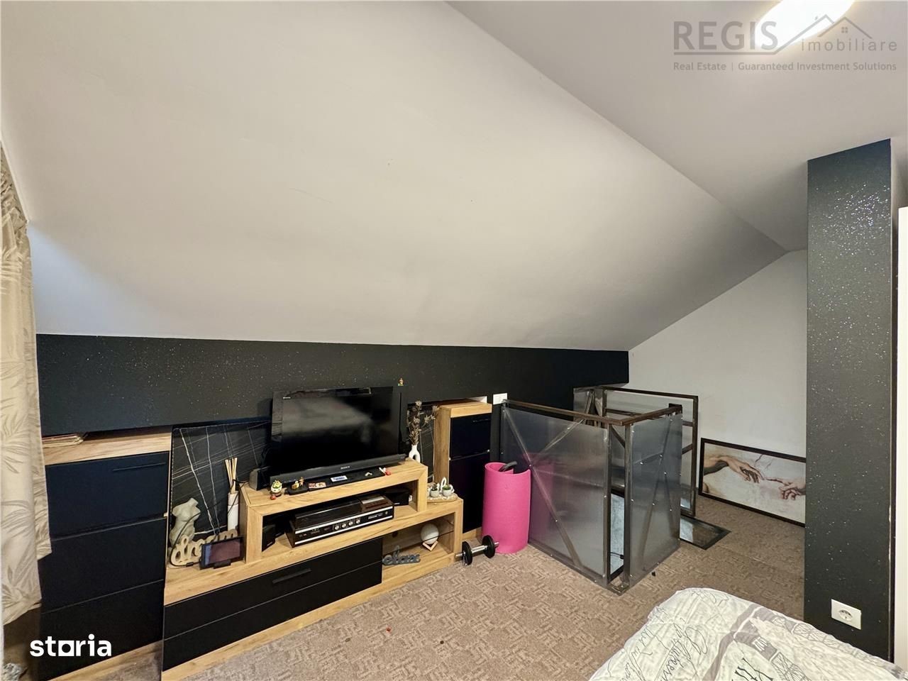 ID intern 5573 REGIS Imobiliare va propune spre vanzare o casa moderna, situata intr-o zona linistita din Lunca Calnicului, la doar 20 minute de Brasov. Locuinta este ideala pentru o familie care isi doreste confort, intimitate si un stil de viata echilibrat, intr-un cadru natural, departe de agitatia urbana, dar totodata bine conectat la oras. Caracteristici: - Suprafata utila 180 mp - Suprafata teren 750 mp - Regim de inaltime P+Pod - Finalizata in 2021 - 4 dormitoare, din care unul este amenajat ca spatiu de birou - 3 bai, din care o baie este exterioara - Living spatios, cu acces direct pe terasa - Bucatarie mobilata si uitilata complet - Camara - Spalatorie Finisaje premium: -Gresie Villeroy & Boch -Parchet masiv de 2 cm grosime -Blat bucatarie din cuart -Riflaje de stejar -Pervaze interioare si exterioare din travertin Exterior: - Curtea din fata este partial pavata pentru a facilita accesul atat in casa cat si pentru automobile - Camera tehnica - Garaj si parcare acoperita - Gard de beton - Porti automate Detalii constructie: - Ferestre Salamander tripan (3 foi) all season, cu plase de insecte și rulouri încastrate - Ziduri din cărămidă Porotherm 35 cm - Izolație exterioară cu vată bazaltică 20 cm - Inveltoare - tigla - Pod izolat Alte informatii: - Curent trifazat - Fosa septica ecologica si put - Centrala pe lemne - Centrală separată pentru apă caldă (pe timpul verii) Comisionul agentiei este de 2% + TVA din valoarea tranzactionata. Pentru mai multe detalii si vizionari:
