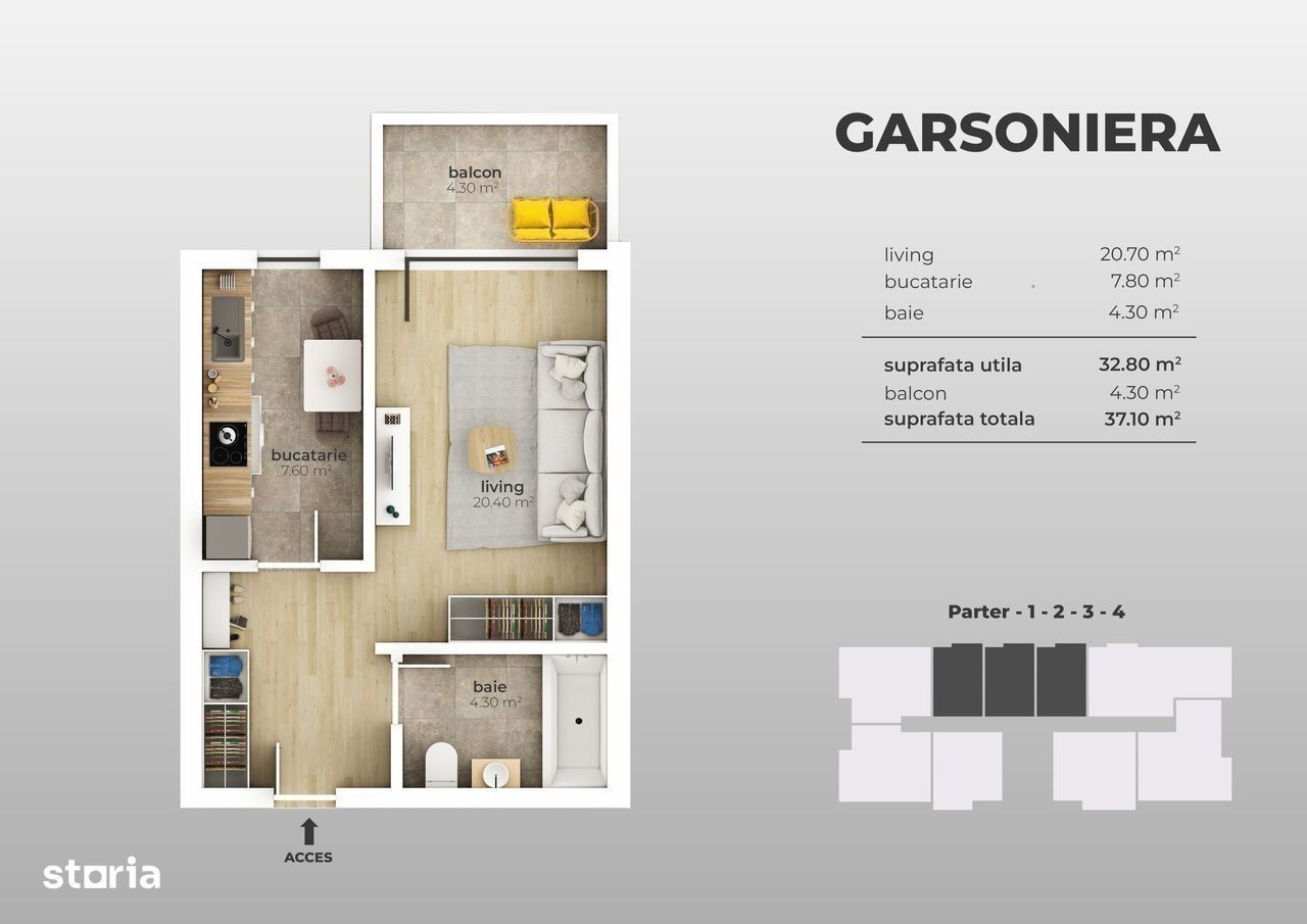 Vânzare GARSONIERA DECOMANDATA - 39.7 mp, acces Metrou Berceni Se oferă spre vânzare o garsoniera cu o suprafață utilă de 39.7 mp, situat într-un imobil modern cu regim de înălțime P+5. Caracteristici și beneficii:
