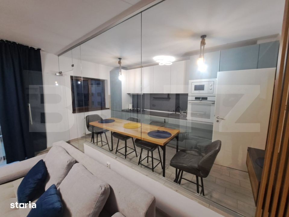 Complet mobilat și utilat | Loc de parcare | Mutare imediată Blitz va prezinta un apartament cu 2 camere situat în Complexul Rezidențial Sânpetru Residence. Proprietatea se află la etajul 1 al unui imobil cu regim de înălțime P+E+M, construit în 2015. Apartamentul se vinde exact ca în prezentare, complet mobilat și utilat, fiind pregătit pentru mutare imediată. Designul interior este modern și elegant, evidențiat de peretele de sticlă dintre living și bucătărie, care oferă lumină naturală din plin și un plus de rafinament. Ideal pentru o familie sau un cuplu care își dorește un spațiu intim, luminos și confortabil. Detalii proprietate: Suprafață utilă: 55 mp Balcon/terasă: 7 mp Compartimentare: hol, baie, living, bucătărie, dormitor, terasă Loc de parcare inclus Dotări și beneficii: Complet mobilat și utilat Electrocasnice incorporabile: Frigider Cuptor electric Cuptor cu microunde Mașină de spălat vase Plită pe gaz și hotă Mașină de spălat rufe Finisaje moderne, de calitate superioară Compartimentare funcțională Lumină naturală pe toată durata zilei Complex rezidențial nou, bine întreținut, în plină dezvoltare Facilități și proximitate: Supermarketuri și farmacii Școli (stație autobuz școlar în apropiere) Grădinițe și creșe Stație RAT Brașov - acces rapid către oraș Apartamentul se vinde exact cum este prezentat.
