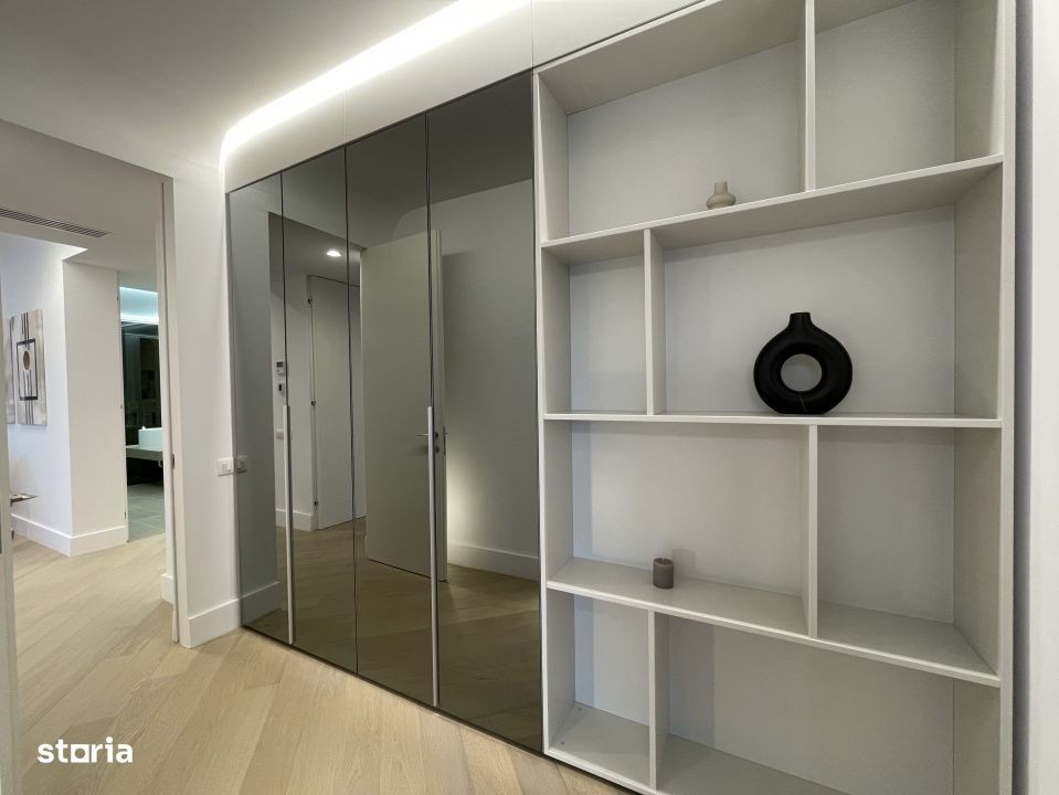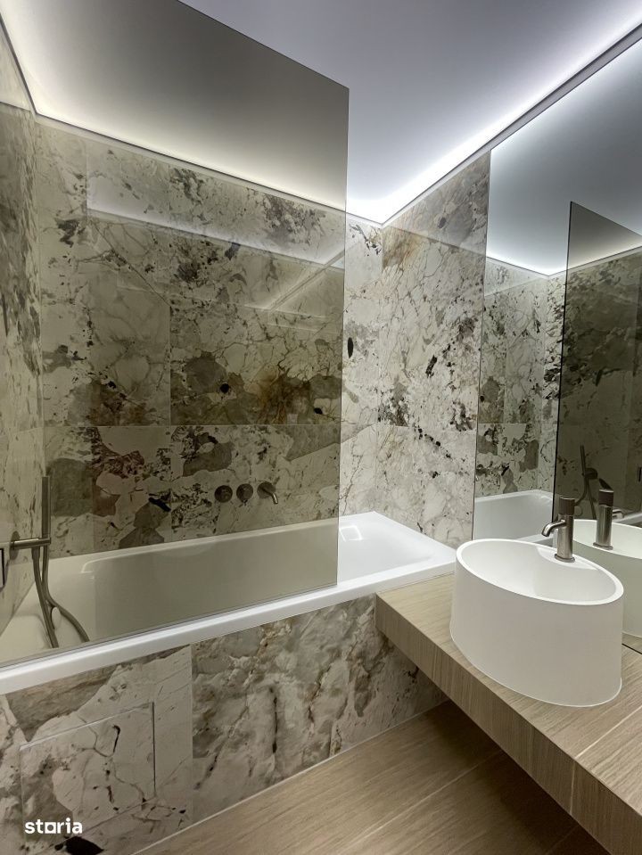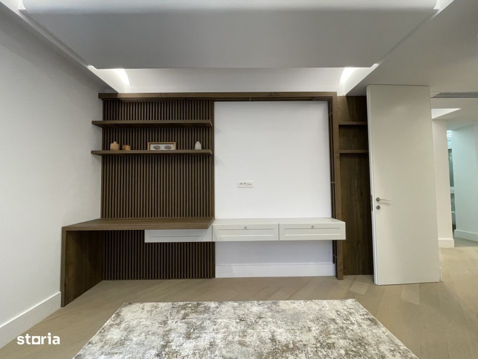 Va propun spre inchiriere un apartament premium de 3 camere, cu un design deosebit si o suprafata utila totala de 103 mp, situat la etajul 3/8, un apartament foarte luminos datorita suprafetelor vitrate foarte mari, unde rafinamentul și confortul se îmbină armonios cu cele mai noi tehnologii și finisaje de înaltă calitate. Amenajat de catre un designer de interior, acest apartament reflectă un concept unitar și rafinat, în care fiecare detaliu, textură și finisaj a fost atent ales pentru a crea o atmosferă caldă, modernă și sofisticată. Vei simți diferența din momentul în care pășești înăuntru - totul este gândit pentru confort și eleganță. Încă de la intrare, pardoseala din lemn deschis te conduce natural prin toate încăperile, oferind continuitate și căldură. Pereții sunt îmbrăcați în finisaje neutre, iar detaliile din lemn închis adaugă profunzime și caracter. Zona de zi este generoasă și primitoare. Livingul îmbină confortul cu rafinamentul prin mobilierul modern, canapele într-o nuanță deschisă și peretele media spectaculos, îmbrăcat în panouri verticale din lemn. Rafturile integrate și spațiile de depozitare invizibile păstrează ordinea, lăsând designul să respire. Tot aici avem si o terasa de 23 mp, cu vedere catre Padurea Baneasa. Bucătăria open-space este un exemplu de eleganță discretă: fronturi mate, fără mânere, într-o paletă neutră, blaturi curate și un backsplash continuu, perfect integrat. Electrocasnicele încorporate dispar în mobilier, iar totul emană simplitate și rafinament. Iluminatul joacă un rol esențial în această locuință. Benzile LED ascunse în tavane conturează subtil spațiile, iar lumina caldă pune în valoare textura lemnului și nuanțele delicate ale finisajelor. Spoturile atent poziționate completează atmosfera cu discreție și eleganță. Dormitoarele sunt gândite ca refugii personale. Liniile simple, mobilierul integrat și draperiile grele creează o ambianță intimă și relaxantă, perfectă pentru odihnă. Baile sunt foarte elegante, cu finisaje premium - faianță cu aspect de marmură verde, lavoare pe blat (tip vas), oglinzi mari și duș walk-in cu pardoseală din lemn. Iluminarea este modernă, cu tarvertin. Ansamblul rezidențial Cortina 126 prezinta un concept de locuire exclusivist caracterizat prin finisaje și dotări high-end, adaptate trendurilor pieței imobiliare din marile capitale ale lumii, situate în cea mai exclusivistă zonă rezidențială din România - ZONA DE NORD - STR. EROU IANCU NICOLAE 126, in imediata apropiere de Mark Twain International School, Cambridge School of Bucharest, Jolie Ville Galleria, etc. Finisaje premium și dotări high-tech: • Fațadă ventilată cu plăci ceramice Florim - un design modern și eficiență energetică ridicată. • Tâmplărie din aluminiu Schuco cu geam tripan - izolare termică și fonică superioară pentru un confort sporit. • Climatizare centralizată și convectoare casetate LG cu Inteligență Artificială - control optim al temperaturii și eficiență energetică. • Încălzire în pardoseală Herz - distribuție uniformă a căldurii pentru un confort maxim. • Parchet din lemn triplu stratificat Pergo - durabilitate și eleganță într-un finisaj premium. • Placări ceramice Florim - materiale de top pentru un design sofisticat și durabil. • Obiecte sanitare Daniel Rubinetterie - eleganță și funcționalitate în fiecare detaliu al băii. • Iluminare ambientală cu LED - tavane cu design modern și lumină indirectă pentru un efect spectaculos. • Uși interioare de tip Filomuro - linii minimaliste și finisaje impecabile pentru un stil contemporan. • Uși de acces securizate - siguranță maximă pentru confortul dumneavoastră. • Acces securizat cu videointerfon - control complet asupra accesului în locuință. • Încălzire centralizată cu contorizare individuală - eficiență și costuri optimizate. • Podea flotanta pe terase - eleganta si foarte usor de intretinut. • Parcare subterană pe 3 niveluri - siguranță și confort pentru autovehiculul dumneavoastră. Fiecare detaliu a fost atent selecționat pentru a oferi o experiență de locuire la cel mai înalt standard. In pretul afisat, este inclus si u