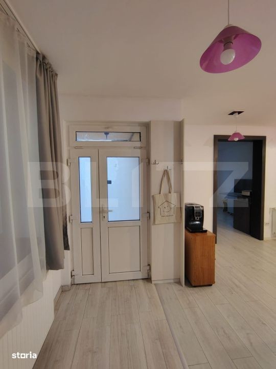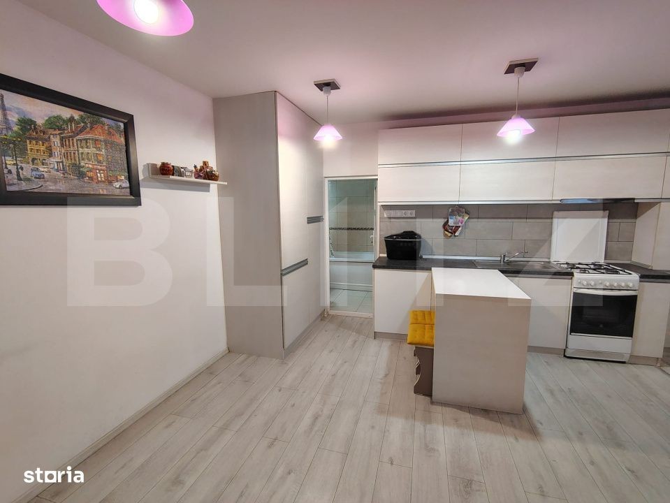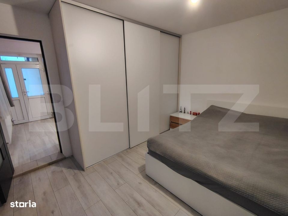 BLITZ oferă spre vânzare casă unifamilială, de tip duplex, situată într-o zonă liniștită exclusiv de case, cu acces rapid către oraș și funcționalitate într-un spațiu optim. Proprietatea dispune de o suprafață utilă de 68 mp, amplasată pe un teren de 495 mp, front stradal 9 m. Compartimentare practică: living tip open space cu bucătărie, 2 camere, 2 băi în oglindă, 2 bucătarii, 2 holuri, beci, pod care se poate amenaja; Curte: construcție ce cuprinde o cameră cu destinație bucătărie de vară sau orice altă destinație, beci, terasă. Construcția este realizată din BCA, este izolată pe exterior cu polistiren de 10 cm. Casa este finisată, mobilată și utilată, renovată integral în 2021, instalațiile aferente tuturor utilităților sunt noi, centrală proprie. Exterior: acoperiș din țiglă, curte pavată, gard prevăzut cu marmură, poartă cu telecomandă, sistem de supraveghere video funcțional, terasă acoperită integral prevăzută cu instalație de gaz pentru amenajare bucătărie exterioară, gradină pe lungimea căreia se află dispusă țeava de gaz și cea de apă. În apropiere se află mai multe hipermarketuri. Pentru o experiență deplină și mai multe detalii vă așteptăm la o vizionare!