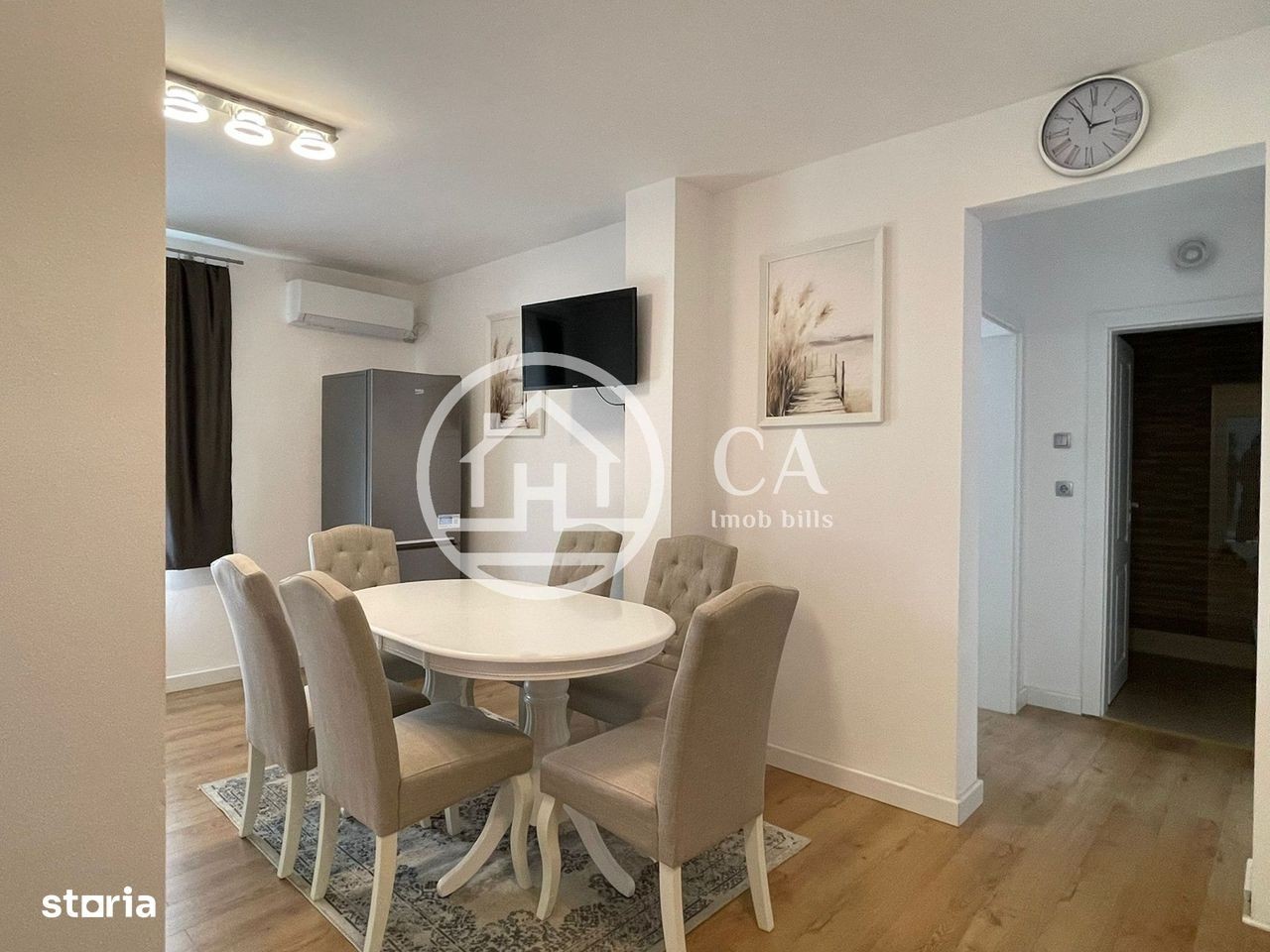 Agenția imobiliară CA Imob bills vă oferă spre închiriere un apartament lux cu 2 camere, situat în Calea Aradului, Oradea. Locuința are o suprafață utilă de 60 mp și este amplasată la etajul 7 al unui bloc cu 9 etaje. Imobilul este decomandat și se compune din: hol de acces, living spațios, bucătărie cu loc de luat masa, un dormitor și o baie cu duș. Apartamentul este dotat cu: gresie și faianță, parchet laminat, ușă de înaltă siguranță la intrare, uși de interior din MDF, interfon, un aparat de aer condiționat, ferestre cu geamuri termopan și rulouri. Locuința se închiriază complet mobilată și utilată, fiind echipată cu: mașină de spălat rufe, uscător de haine, mașină de spălat vase, hotă, plită electrică, cuptor electric, cuptor cu microunde, cafetieră, combină frigorifică și două televizoare SMART. Încălzirea apartamentului se realizează prin calorifere, fiind asigurată de sistemul de termoficare al orașului, având costuri de întreținere reduse și oferind un confort termic sporit. Parcarea se găsește în proximitatea imobilului. În apropiere se găsesc : școli, grădinițe, parcuri, stații ale mijloacelor de transport în comun, centre comerciale, Universitatea din Oradea, Lidl și Lotus II. Prețul acestui apartament cu 2 camere de închiriat, situat în Calea Aradului, Oradea, este de 550 euro/lună. Pentru detalii suplimentare, informații și vizionări, ne puteți contacta la: e-mail: website: The real estate agency CA Imob bills offers you for rent a luxury 2-room apartment, located in Calea Aradului, Oradea. The home has a usable area of 60 square meters and is located on the 7th floor of a 9-story building. The building is detached and consists of: entrance hall, spacious living room, kitchen with dining area, one bedroom and one bathroom with shower. The apartment is equipped with: ceramic and porcelain tiles, laminate flooring, high-security entrance door, MDF interior doors, intercom, an air conditioner, double-glazed windows and roller blinds. The home is rented fully furnished and equipped, being equipped with: washing machine, clothes dryer, dishwasher, hood, electric hob, electric oven, microwave oven, coffee maker, fridge-freezer and two SMART TVs. The apartment is heated by radiators, provided by the city's district heating system, with low maintenance costs and offering increased thermal comfort. Parking is located near the building. Nearby are: schools, kindergartens, parks, public transport stations, shopping centers, the University of Oradea, Lidl and Lotus II. The price of this 2-room apartment for rent, located in Calea Aradului, Oradea, is 550 euros/month. For additional details, information and viewings, you can contact us at: e-mail: website: