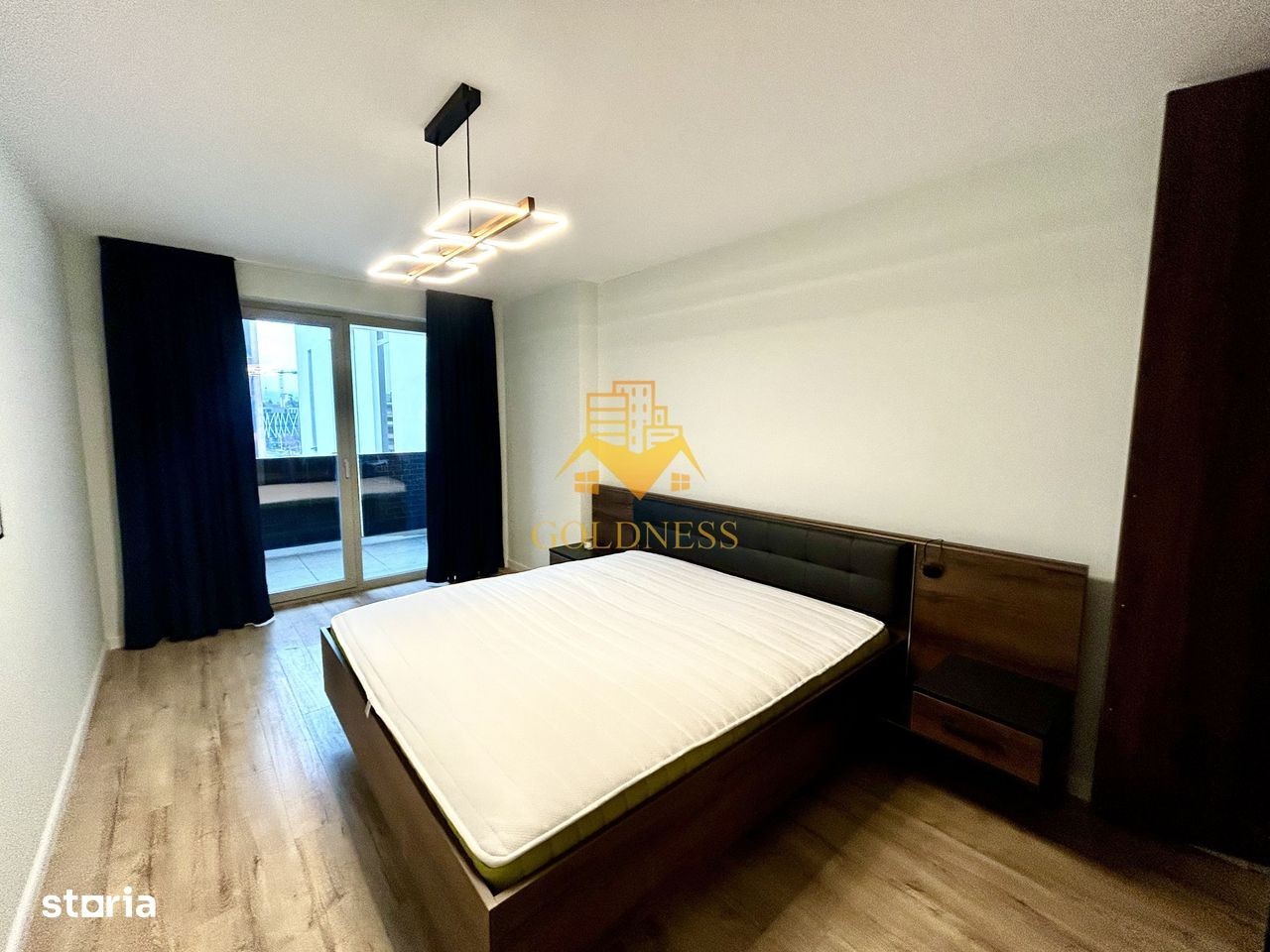 GOLDNESS Imobiliare vă propune spre închiriere un apartament cu 2 camere complet mobilat și utilat, la etajul 5 într-un imobil de 6 etaje, în Cartierul Gheorgheni. Dispune de loc de parcare subterana! Se află în apropierea stațiilor de transport în comun, magazine, restaurante, spații verzi, farmacii, etc. Apartamentul este compartimentat astfel: - dormitor cu pat matrimonial, dressing, noptiere - living cu bucatarie open space complet utilată și mobilată, canapea extensibilă, loc de servit masa, dressing - baie cu dus walk-in, calorifer port prosop și dulap pentru depozitare. - terasa de 9 mp. Imobilul este dotat cu toate cele necesare- centrală proprie, frigider, plita, hotă, mașină de spălat haine si vase, aer conditionat, etc. Dacă sunteți interesați de acest apartament și doriți să îl vizionați, dar și pentru alte oferte nu ezitați să ne contactați telefonic sau prin e-mail. Vă stăm la dispoziție! Pentru intermediere se percepe un comision de 50% din prețul chiriei!