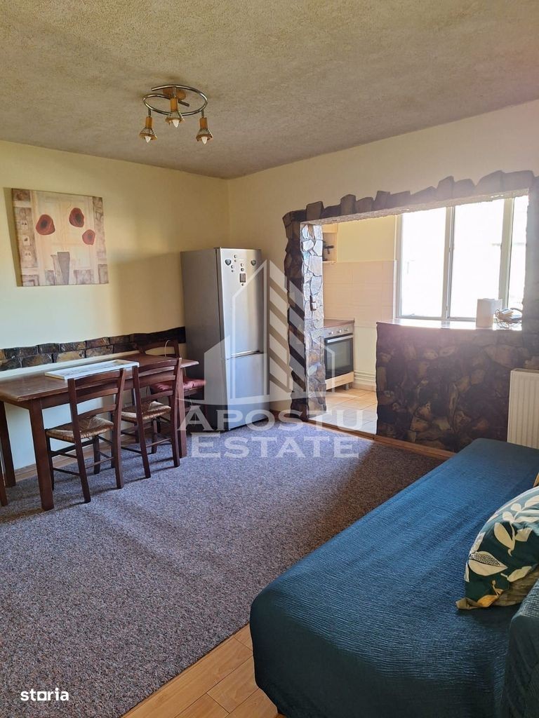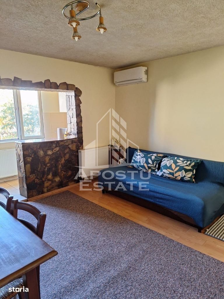 APOSTU ESTATE vă propune spre închiriere un apartament, cu 3 camere, situat într-o zonă liniștită și bine conectată din Aradului, ideal pentru cupluri Suprafață utilă: 60 mp Compartimentare eficientă: Bucătărie complet mobilată și utilată, cu loc de luat masa Living luminos și spațios Dormitor matrimonial mobilat Cameră secundară cu pat dublu Baie principală cu cadă și geam pentru ventilație naturală Confort și facilități: Centrală termică proprie pe gaz Aer condiționat Apartamentul este complet mobilat și utilat Localizare: Zona Aradului - liniște, acces facil spre oraș, în apropiere de magazine, școli și mijloace de transport în comun. Ideal pentru: Cupluri Profesioniști care lucrează remote sau au nevoie de birou acasă Preț chirie: 350 E Programează o vizionare! ID intern: CP2779591