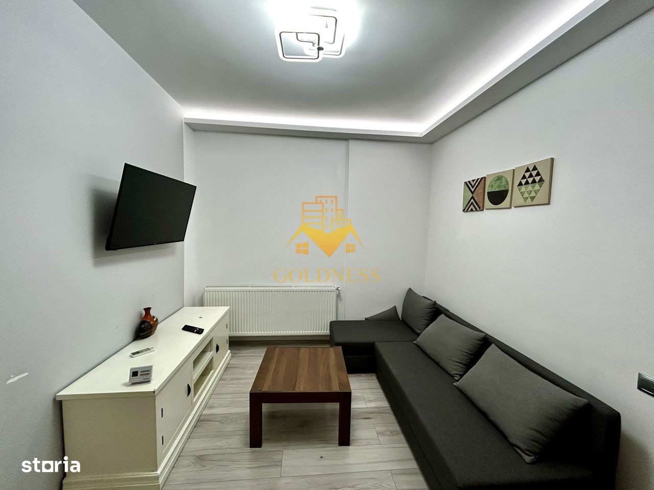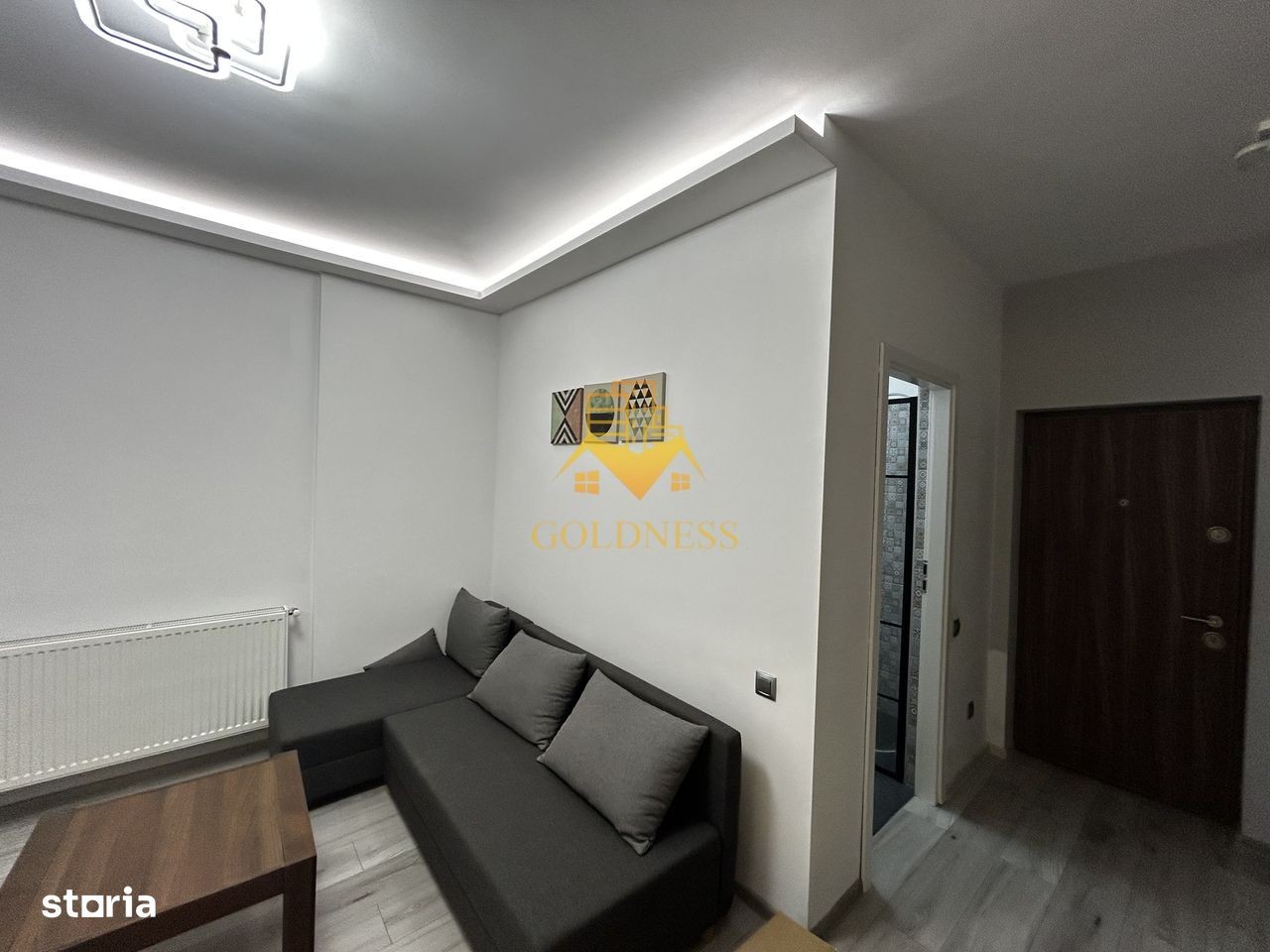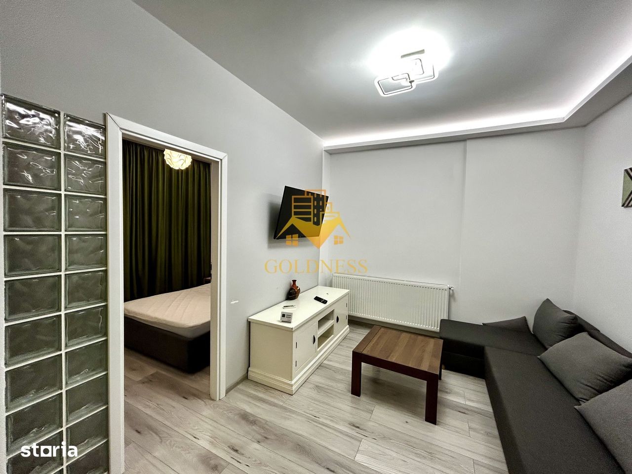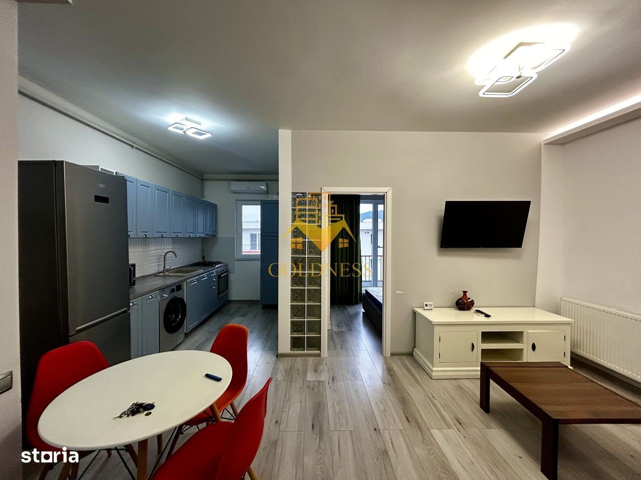 GOLDNESS Imobiliare vă propune spre închiriere un apartament cu 2 camere open space, complet mobilat și utilat, la etajul 3 într-un imobil de 3 etaje, situat în Floresti. Dispune de loc de parcare! Se află în apropierea stațiilor de transport în comun, magazine precum oncos, mega image, profi, restaurante, spații verzi, farmacii, etc. Apartamentul este compartimentat astfel: - dormitor cu pat matrimonial, dulap, noptiere - living cu bucatarie open space complet utilată și mobilată, canapea extensibilă, loc de servit masa - baie cu dus walk-in, calorifer port prosop și dulap pentru depozitare, - balcon de 4 mp, camera tip dressing cu masina de uscat haine. Imobilul este dotat cu toate cele necesare- centrală proprie, frigider, aragaz, hotă, mașină de spălat si uscat haine, aer conditionat, aspiator, calcator de haine, etc. Dacă sunteți interesați de acest apartament și doriți să îl vizionați, dar și pentru alte oferte nu ezitați să ne contactați telefonic sau prin e-mail. Vă stăm la dispoziție! Pentru intermediere se percepe un comision de 50% din prețul chiriei!