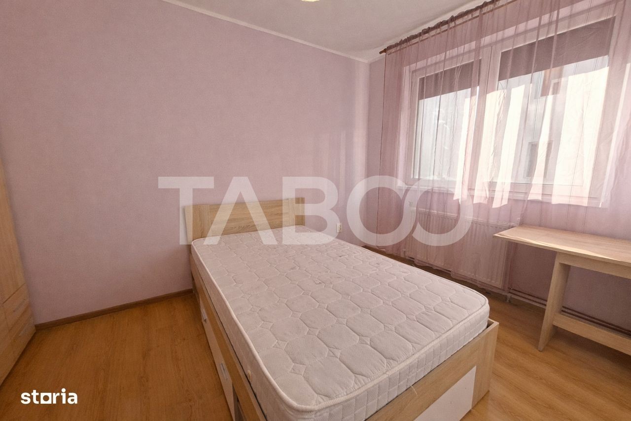 Apartament 3 camere de inchiriat, decomandat, 60 mp, zona Turnisor, Sibiu. Apartament curat si modern, situat la etaj intermediar, cu 2 dormitoare dotate cu pat matrimonial, disponibil de inchiriat. Apartamentul face parte dintr-un complex de blocuri care beneficiaza de curte interioara, care asigura liniste si siguranta locatarilor. • Doua locuri de parcare incluse in pret • Parcare extra pentru vizitatori • Locatie ferita de aglomeratie • Etaj 1 intermediar TABOO Imobiliare propune un apartament de inchiriat cu 3 camere, decomandat, situat in localitatea Sibiu, zona Turnisor, aflat la etajul 1 intr -un imobil tip bloc cu regim de inaltime pe Parter + 2 Etaje; anul constructiei 2009, structura caramida. Suprafata utila de 60 mp + balcon de 6 mp. • Hol de compartimentare; • Bucatarie deschisa cu living; • Baie cu cada si geam de aerisire; • Living cu balcon; • Dormitor cu pat matrimonial; • Dormitor cu pat matrimonial; • Debara; • Usa intrare: metal; • Usi interioare: celulare; • Tamplarie ferestre: pvc, termopan; • Pereti: vopsea lavabila, faianta; • Podele: parchet, gresie. • Bucatarie: mobilata, utilata; • Mobilat: complet; • Utilitati: curent electric, apa, canalizare, gaz, catv, telefon, acces internet, fibra optica; • Izolatii: exterior, bloc izolat termic; • Contorizare: apometre, contor gaz, contor curent electric, contorizare separata; • Caracteristici bloc: interfon, acoperis. Apartamentul se inchiriaza mobilat si utilat cu:aragaz, hota, masina de spalat rufe, masina de spalat vase, frigider cu congelator. Incalzirea se realizeaza prin centrala proprie, calorifere. Pentru a se inchiria acest apartament se achita proprietarului chiria + o luna garantie. Pret: 450€ Sună-ne acum și află detalii despre această proprietate de inchiriat din Sibiu, dar și despre alte proprietăți potrivite pentru tine.