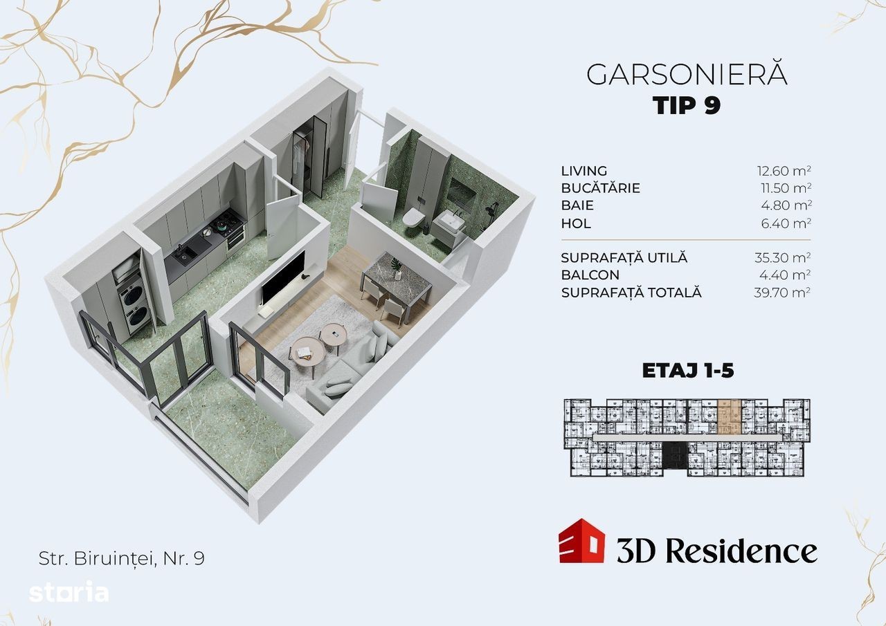 Vânzare GARSONIERA DECOMANDATA - 39.7 mp, acces Metrou Berceni Se oferă spre vânzare o garsoniera cu o suprafață utilă de 39.7 mp, situat într-un imobil modern cu regim de înălțime P+5. Caracteristici și beneficii: