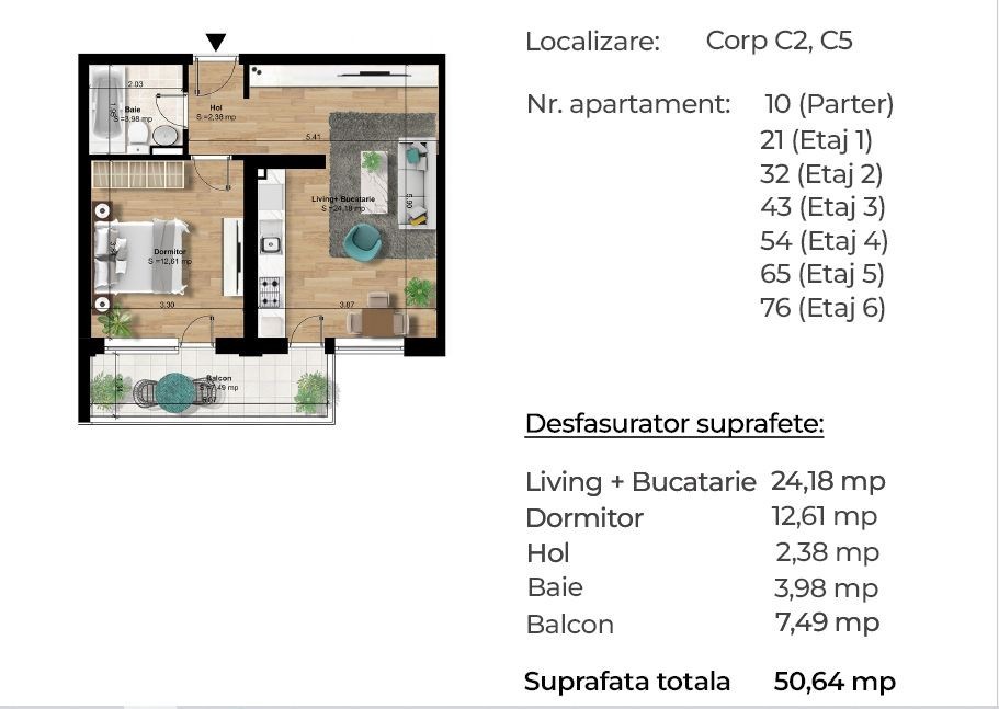 Vânzare apartament tip studio - 50,64 mp, etaj 3/7, 5 minute de Metrou Berceni Se oferă spre vânzare un apartament tip studio, cu o suprafață utilă de 50,64 mp, situat la etajul 3 din 7, într-un ansamblu rezidențial premium.